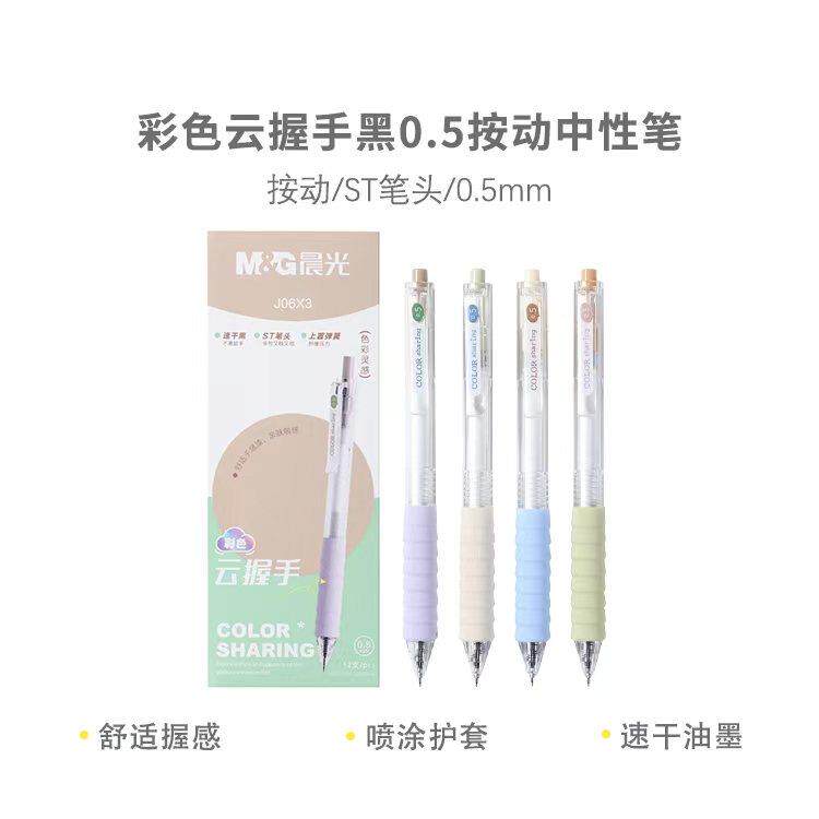 晨光超软云握手刷题笔按动中性笔速干ST头彩色软握黑色水笔考试学生专用签字圆珠笔高颜值顺滑新款小白笔女生