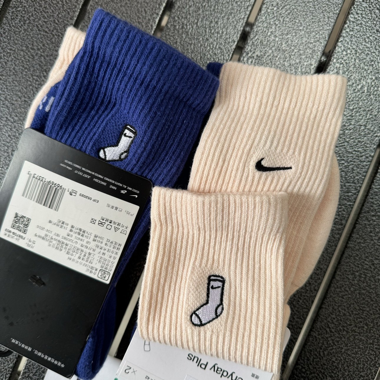 Nike耐克 男女春季新款舒适速干中高筒运动袜2双装刺绣支撑FB5709