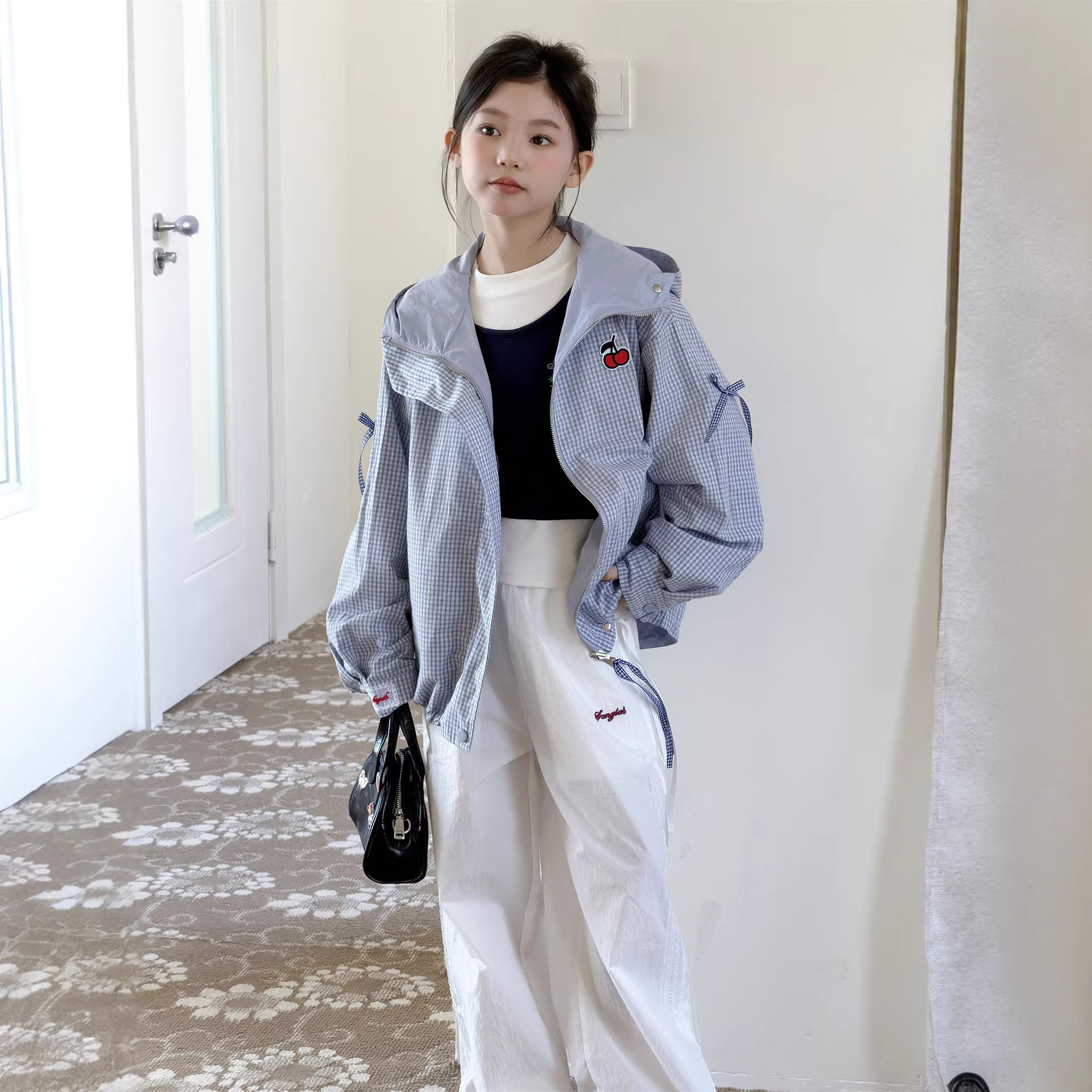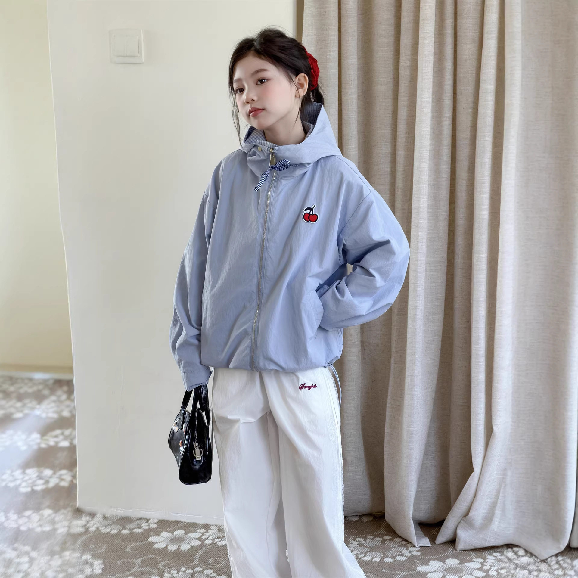 女童双面穿外套春装2026新款韩版休闲女大童宽松连帽洋气春秋上衣