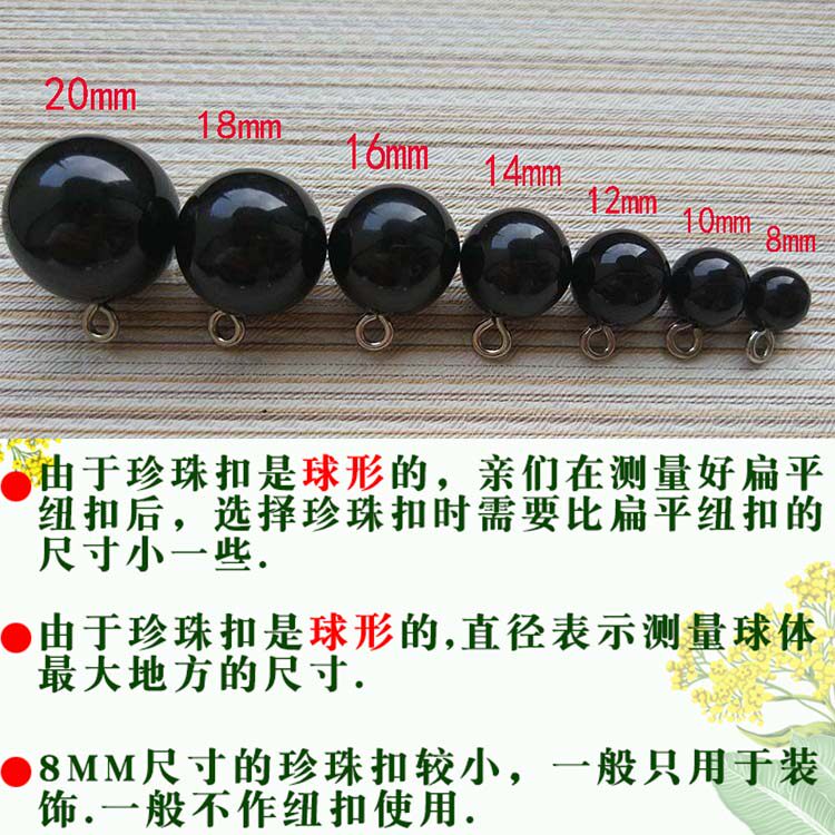 热销大小号圆形珍珠纽扣扣子带孔小香风白色黑色衬衫衣服高档扣