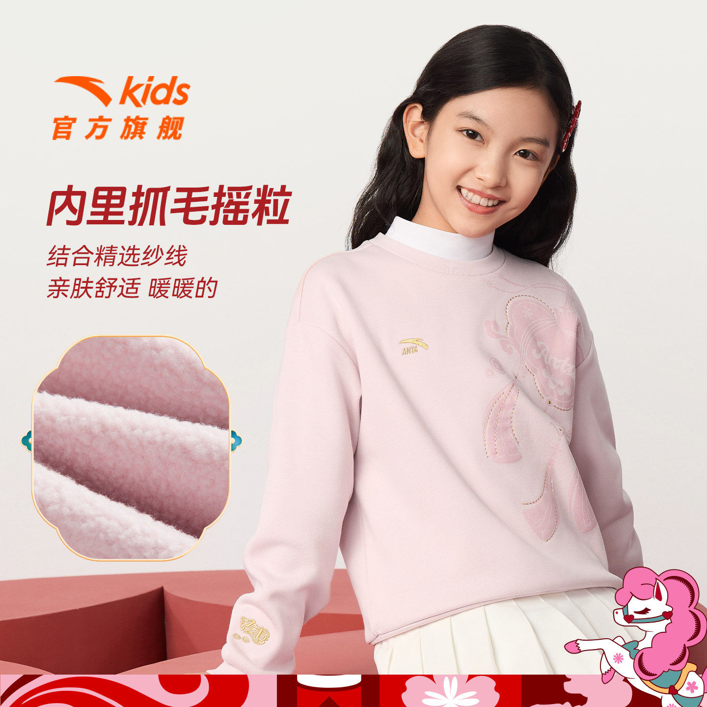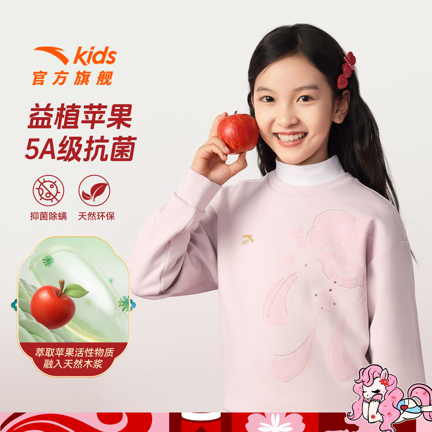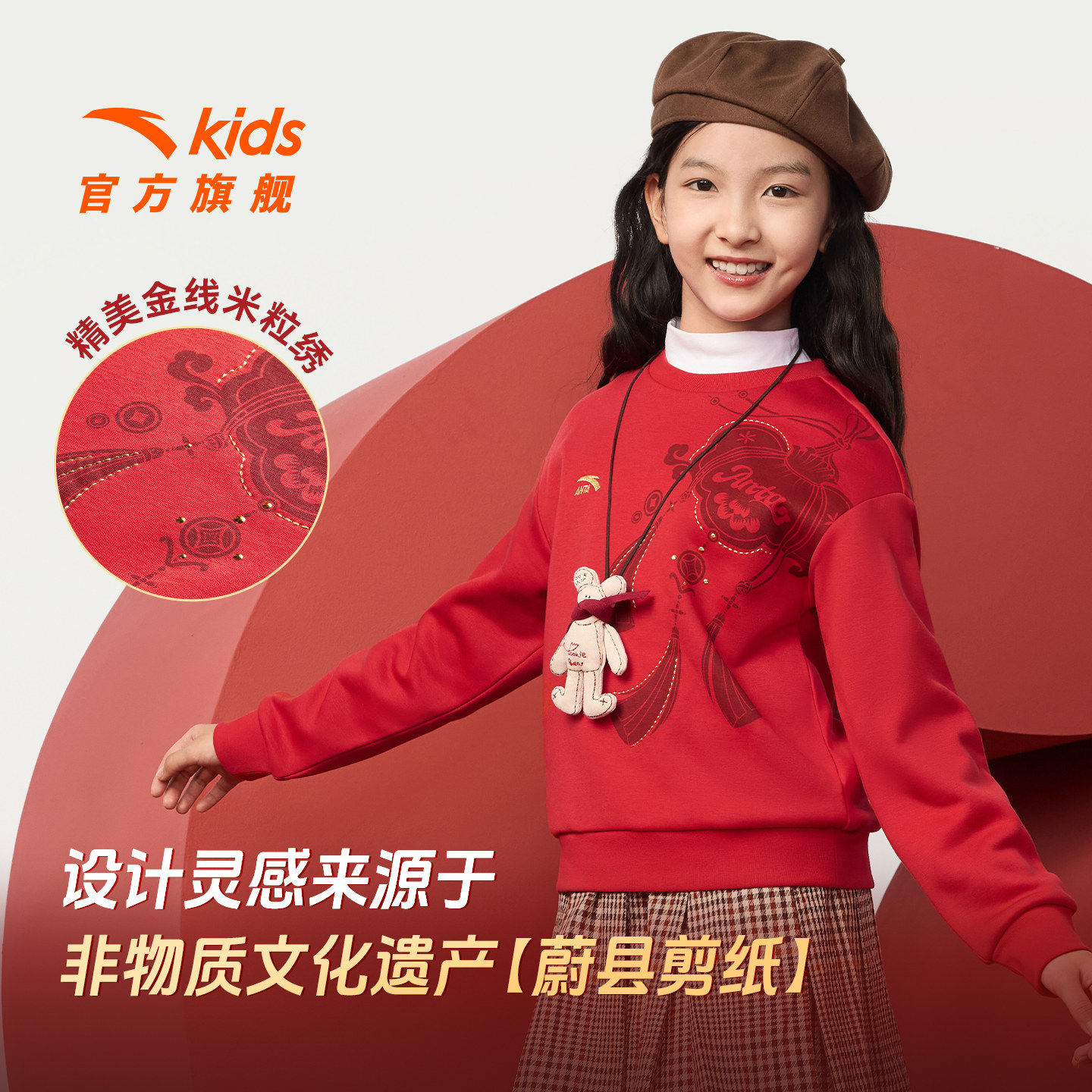 红色新年马年安踏儿童卫衣女童2026年宝宝上衣小公主洋气拜年衣服