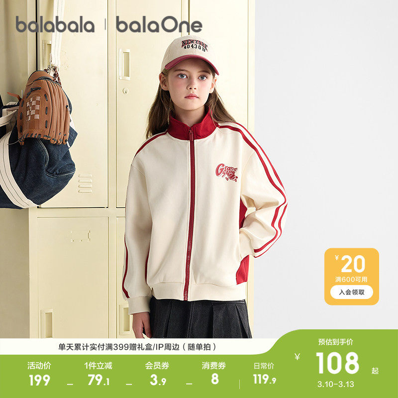 巴拉巴拉童装儿童外套男童女童上衣春秋2026新款春装棒球服复古潮