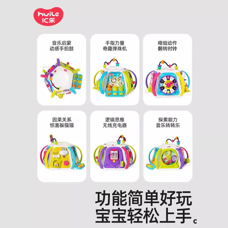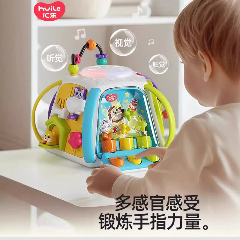 汇乐蒙氏早教六面体音乐声光手拍鼓儿童益智早教多面体婴幼儿玩具