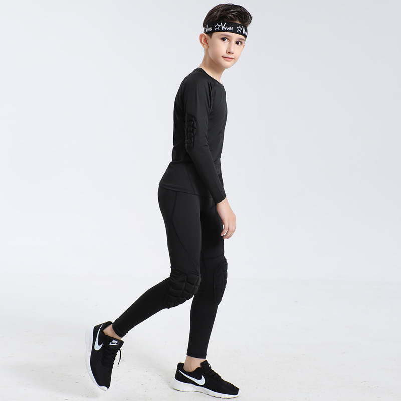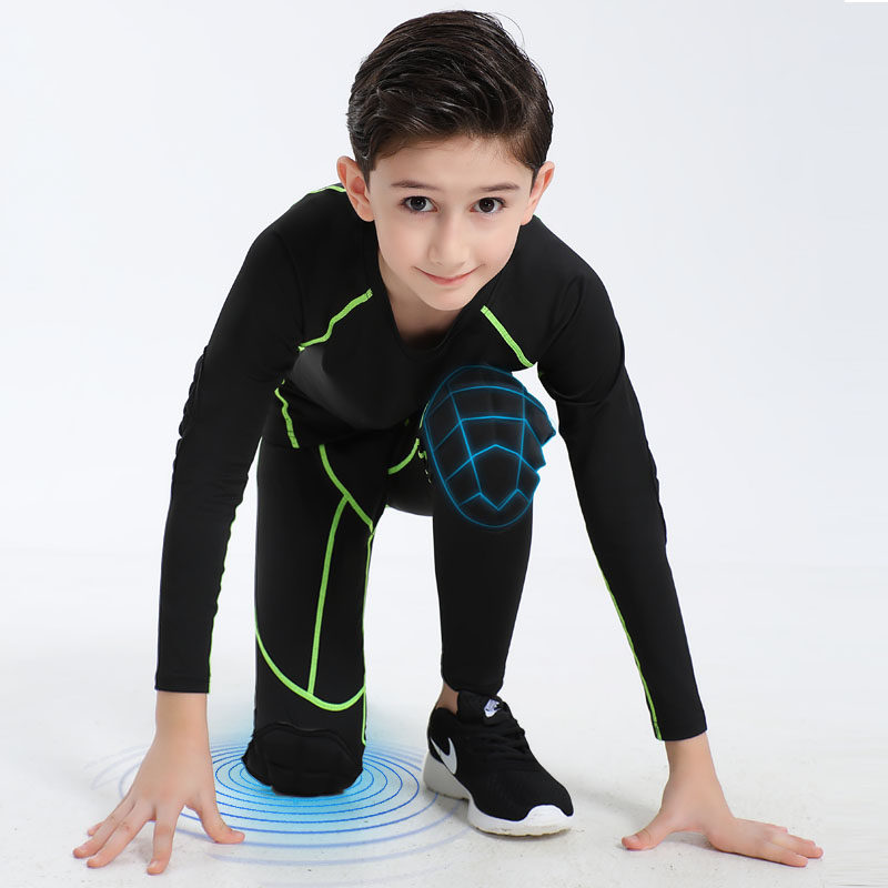 儿童紧身衣训练服速干篮球足球跑步防摔专用护膝护肘运动套装春季