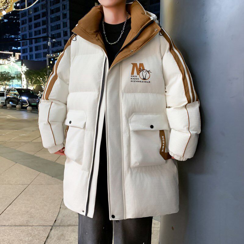 冬季中长款棉衣男孩青少年初高中学生帅气百搭加厚羽绒棉服袄子潮