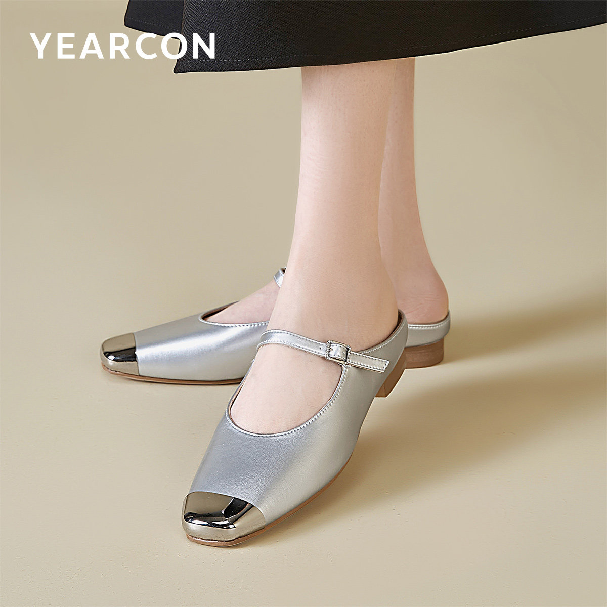 意尔康女鞋夏季包头凉鞋方头单鞋懒人气质仙女风配裙子玛丽珍半拖