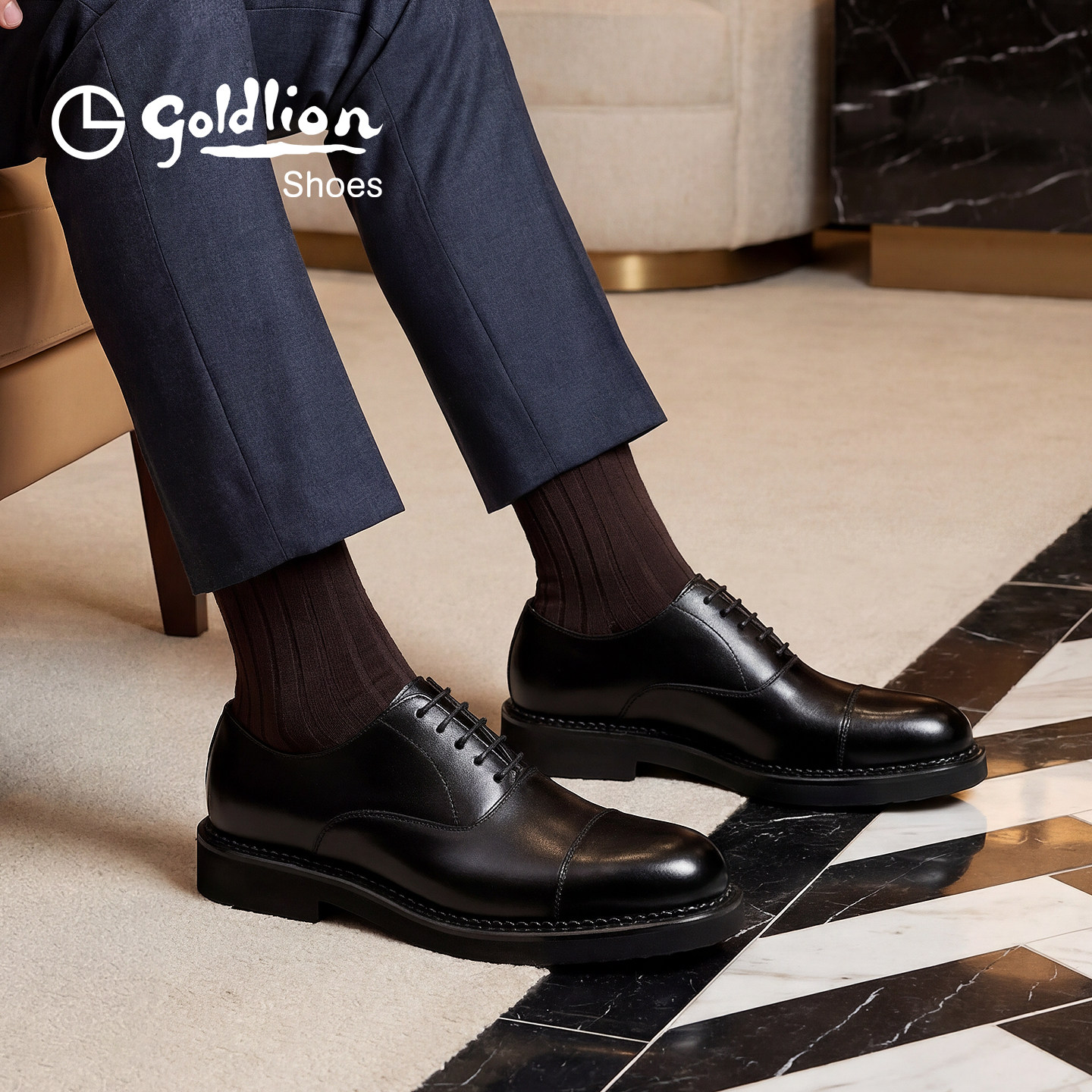 金利来男鞋2026春夏季新款商务皮鞋男士通勤增高三接头牛津鞋真皮