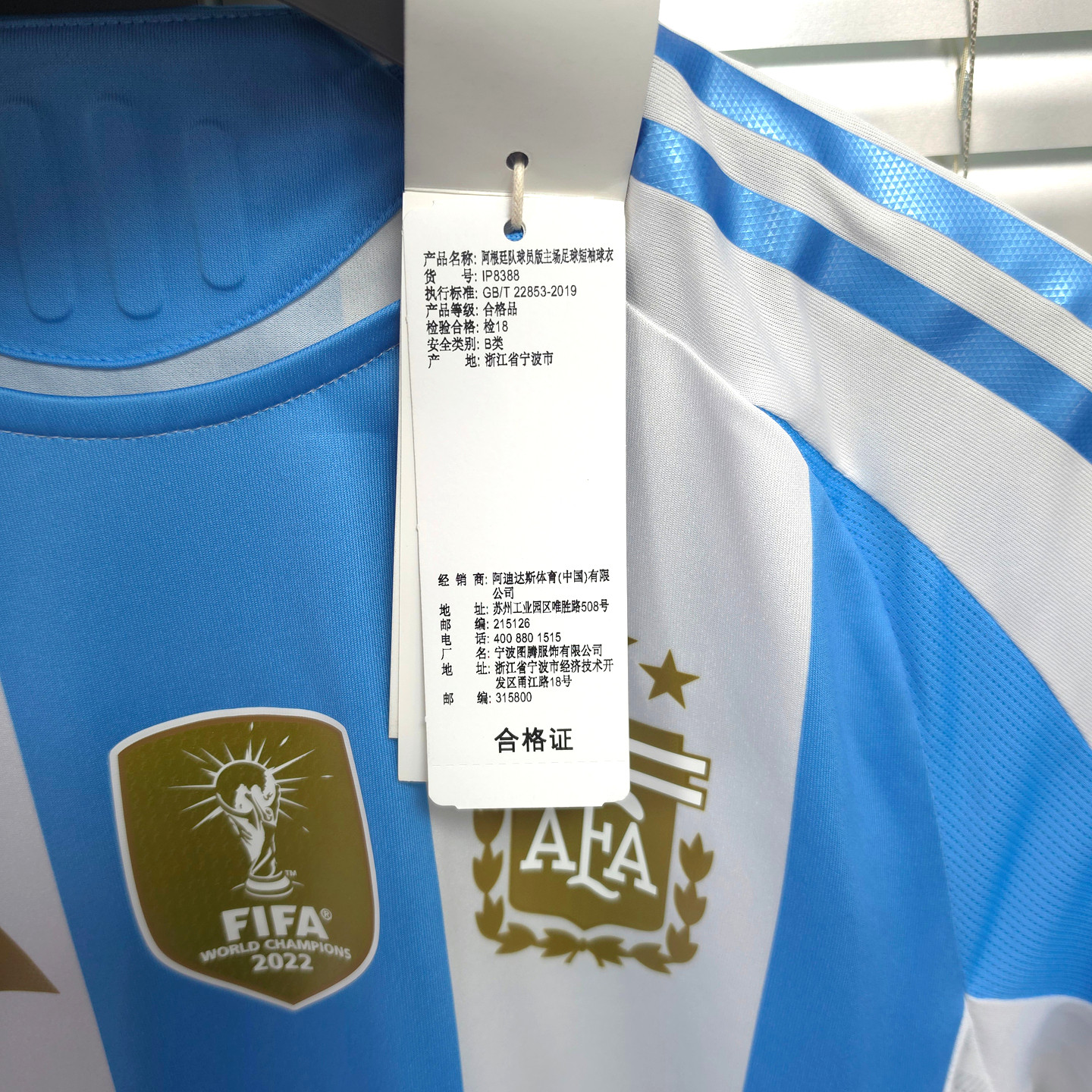 Adidas 阿迪达斯 男子阿根廷队球员版主场足球服短袖球衣 IP8388