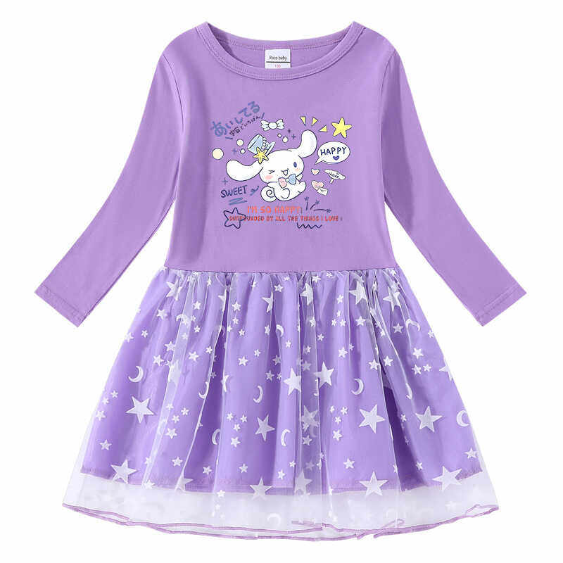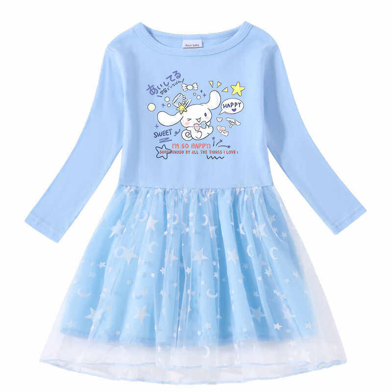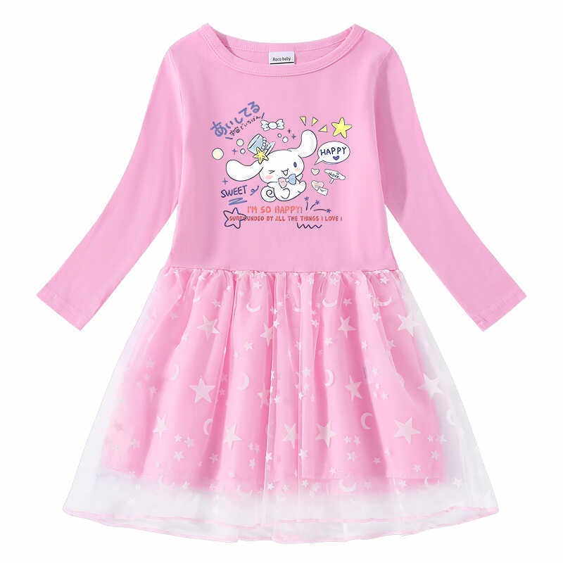 2024春秋新款女童起裙子星星月亮网纱公主裙长袖秋装连衣裙2-7岁
