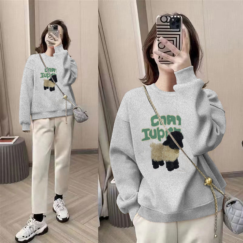 秋冬季加绒加厚女士圆领卫衣2026新款爆款慵懒风高级感超好看外套