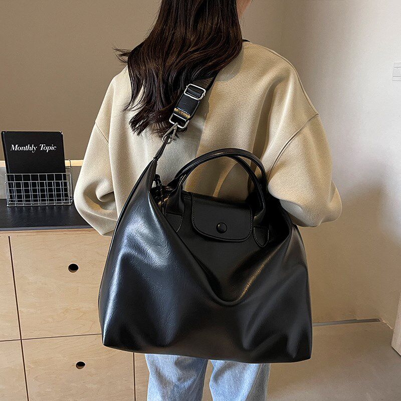 女士外出旅行包2024新款时尚PU大容量出差简约斜挎包手提男行李袋