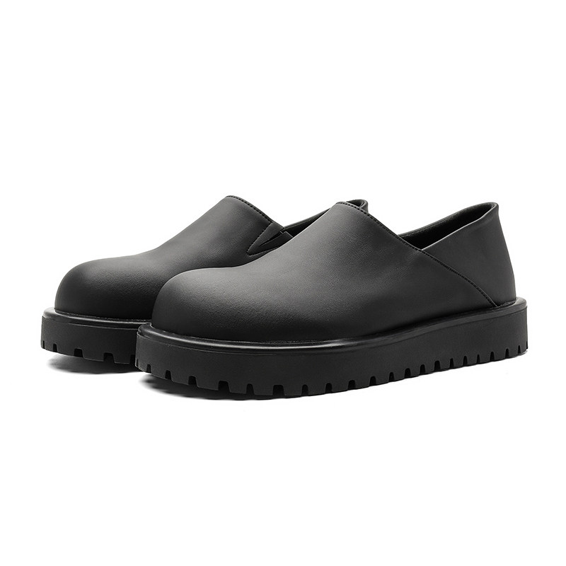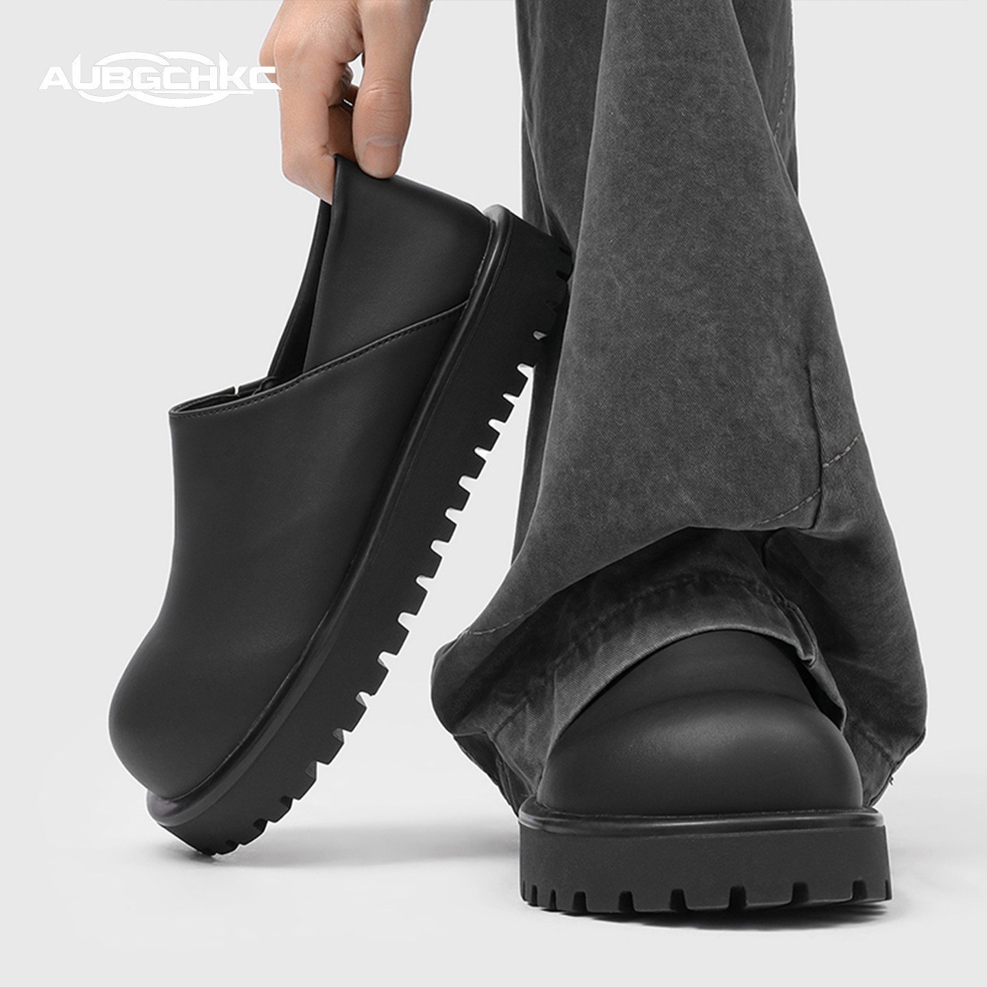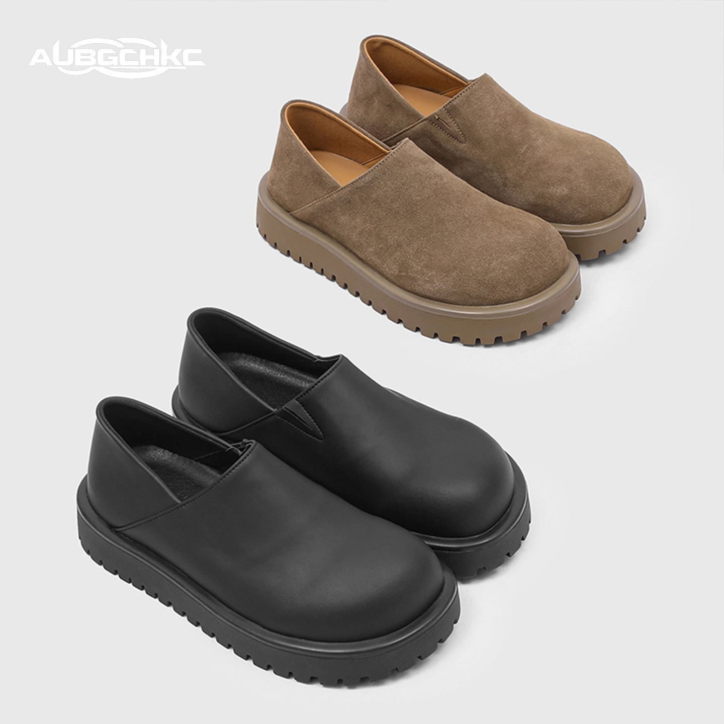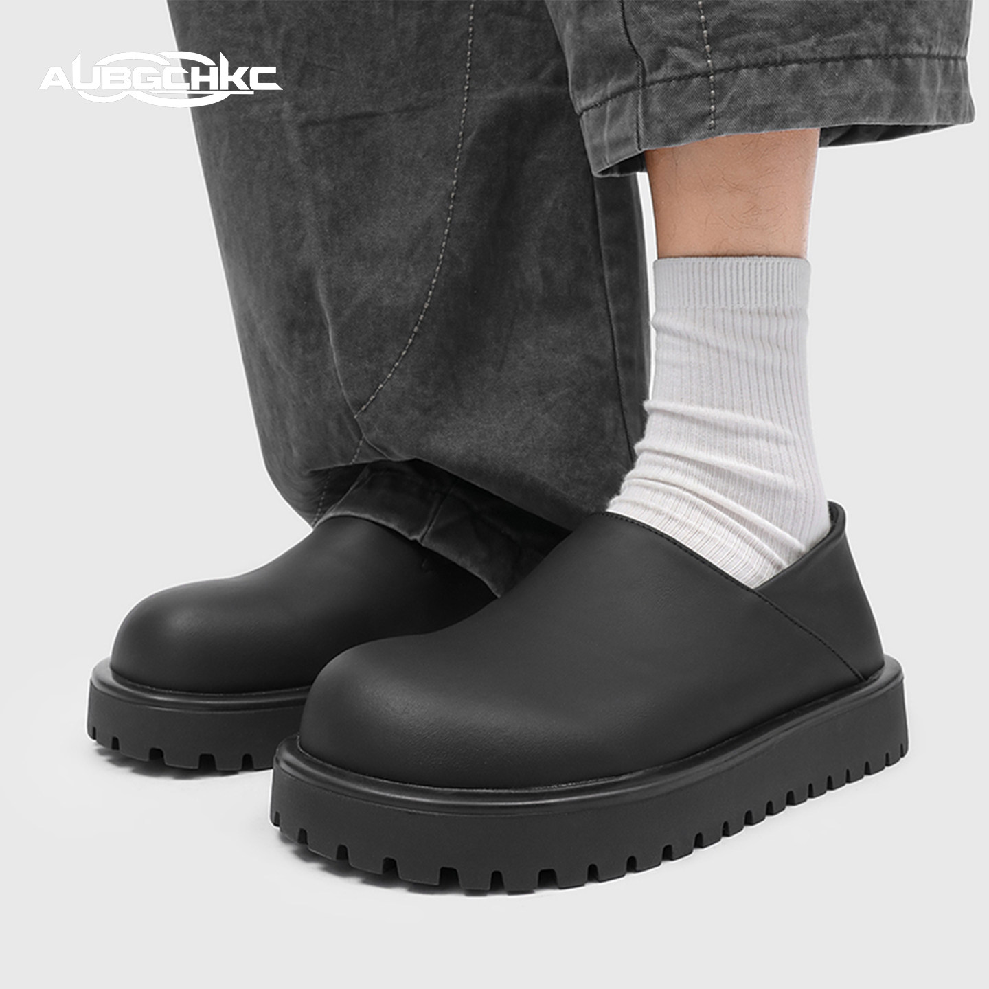 AUBGCHKC穆勒勃肯鞋子男女款厚底增高黑色皮鞋一脚蹬休闲乐福鞋男