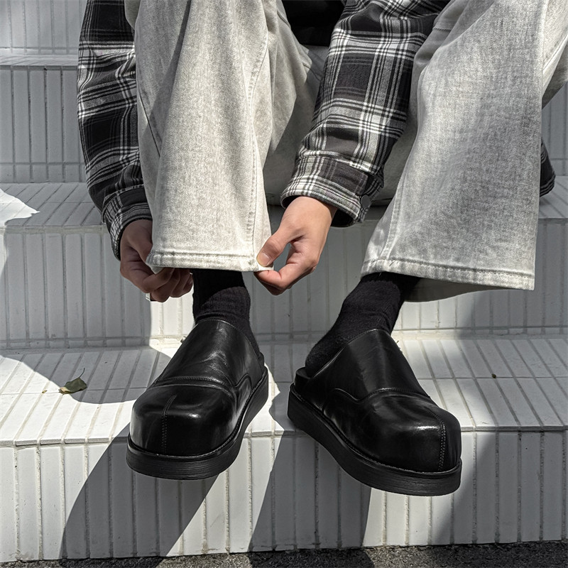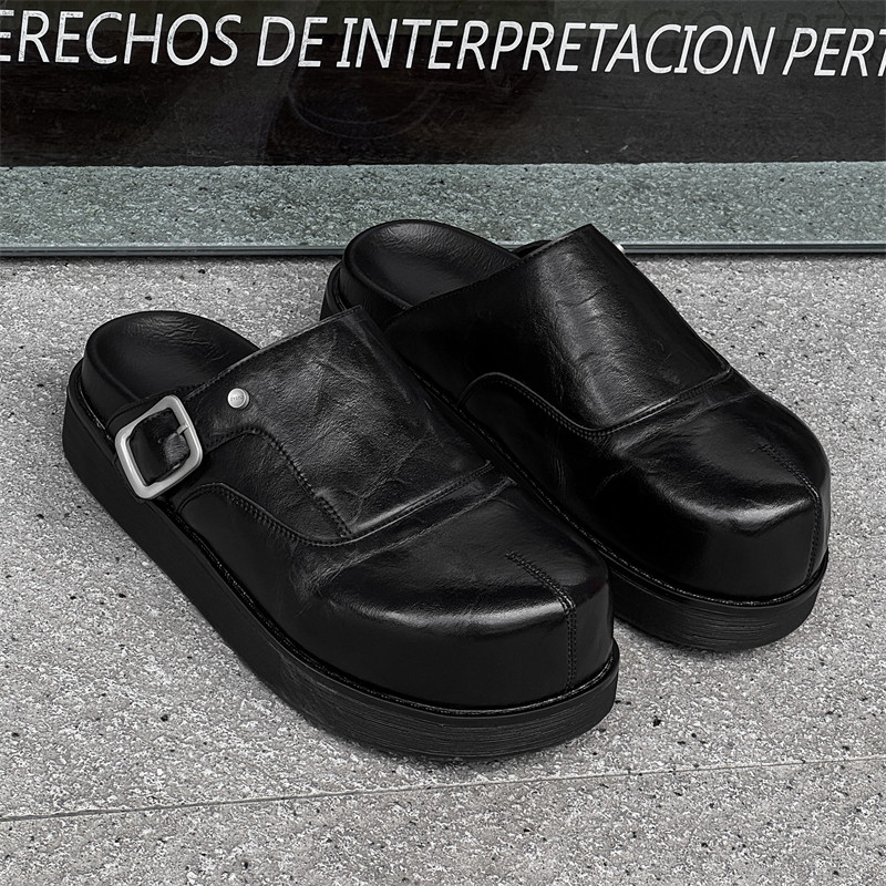一脚蹬勃肯鞋黑色穆勒德比鞋男款休闲乐福鞋厚底增高外穿包头拖鞋