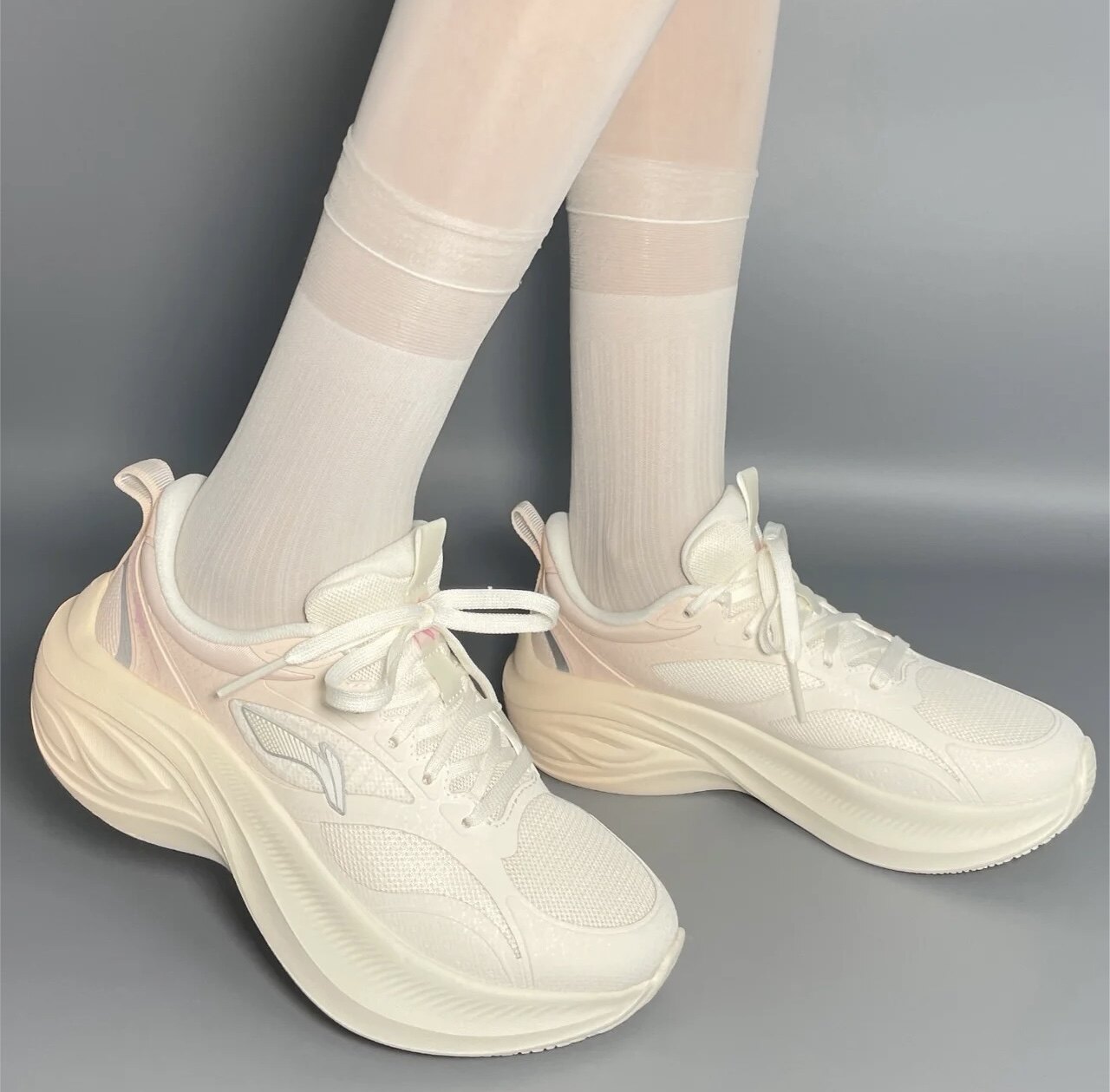 李宁凌波v2跑步鞋女轻便透气厚底增高减震软底休闲百搭慢跑运动鞋