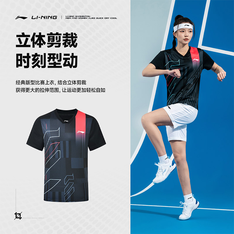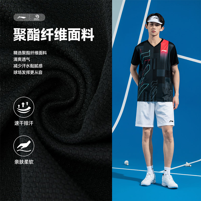 李宁羽毛球服男女款运动短袖短裤套装速干透气比赛服跑步健身训练