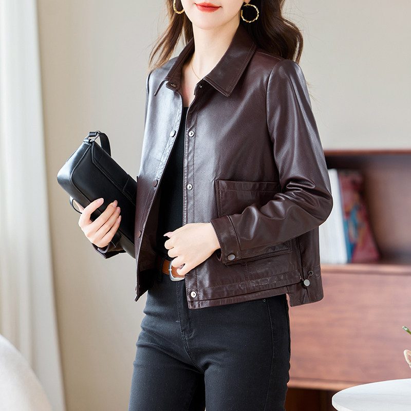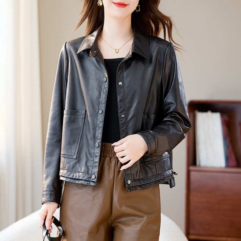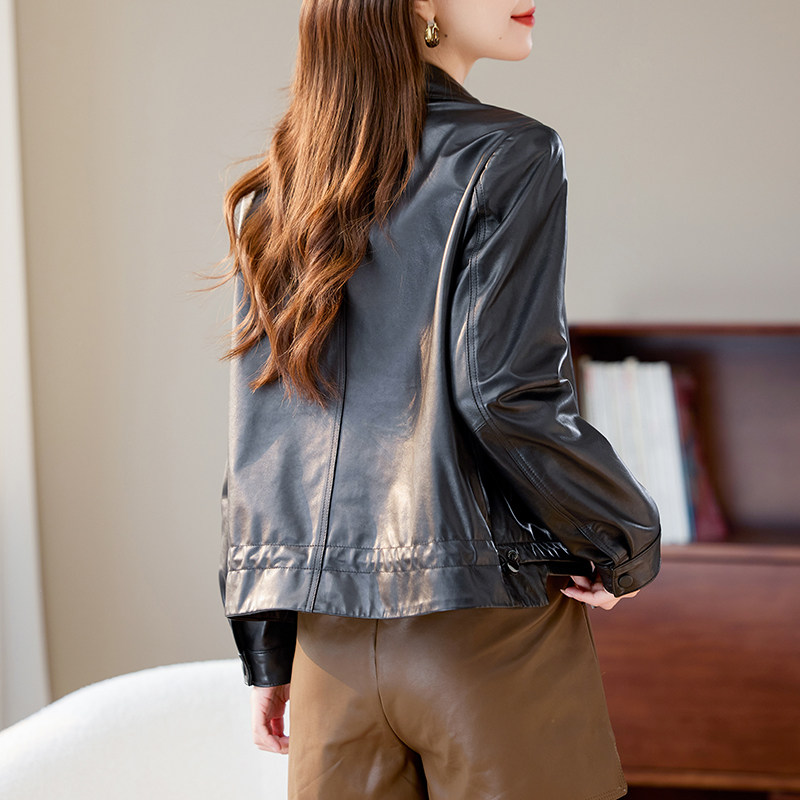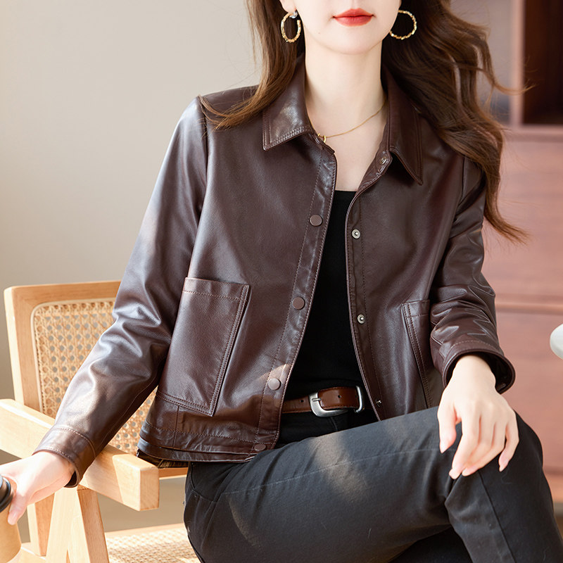 卡若维娅真皮皮衣外套女短款高级感黑色2025秋季流行机车夹克棕色