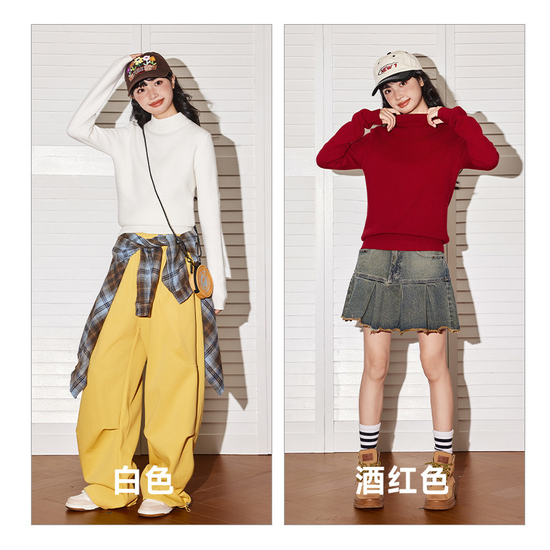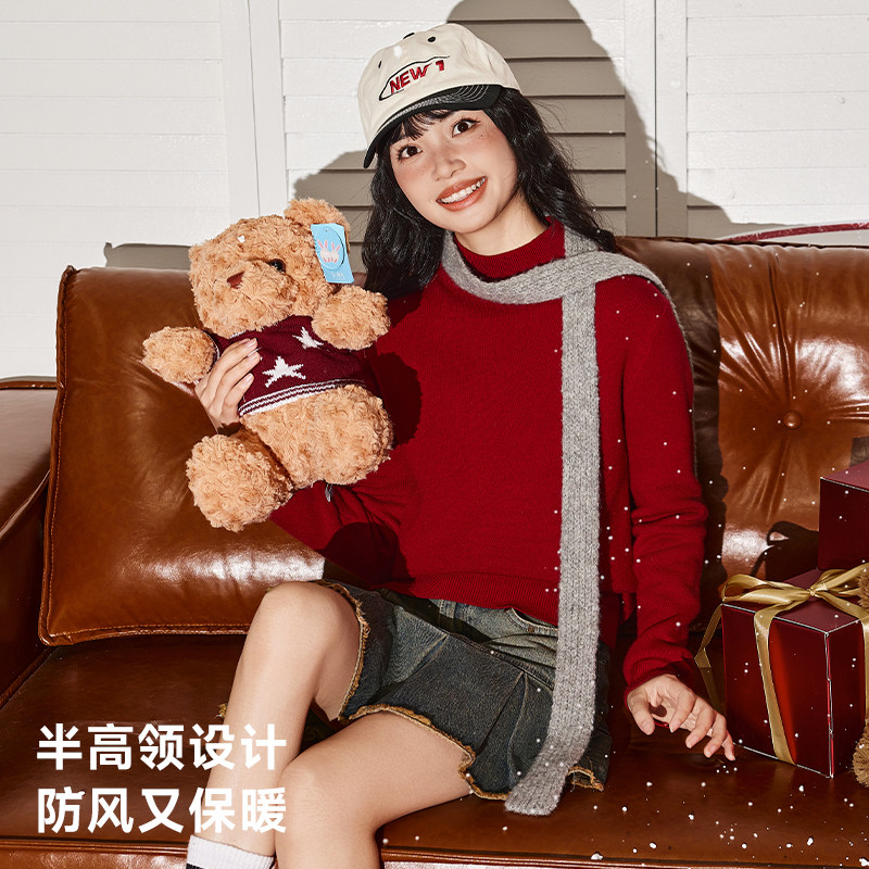 唐狮女款半高领红色打底衫2026新款修身显瘦弹力毛衣女生拜年服VB