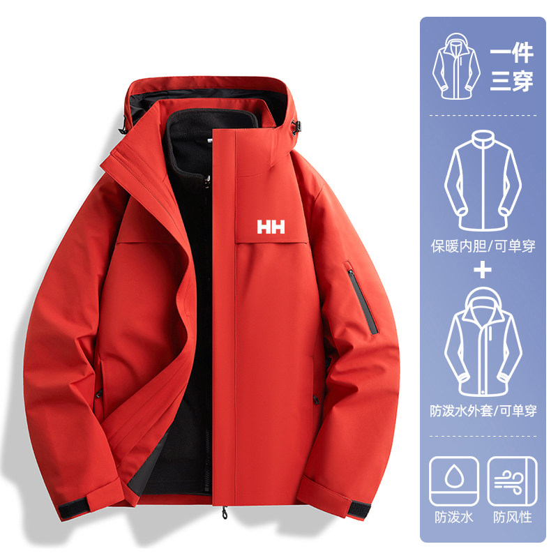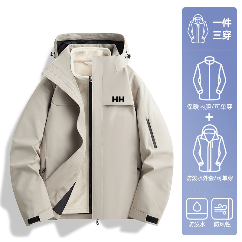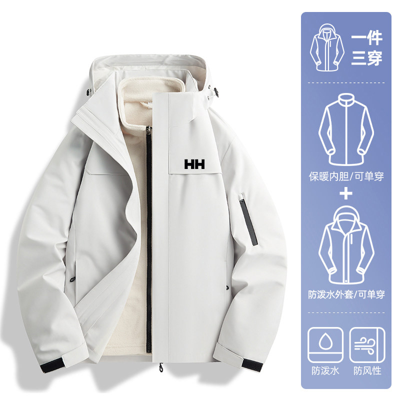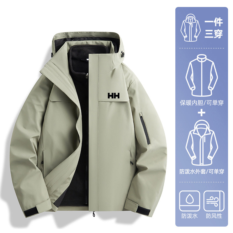 官方正品HH军绿色冲锋衣男款三合一可拆卸抓绒衣内胆加绒加厚外套