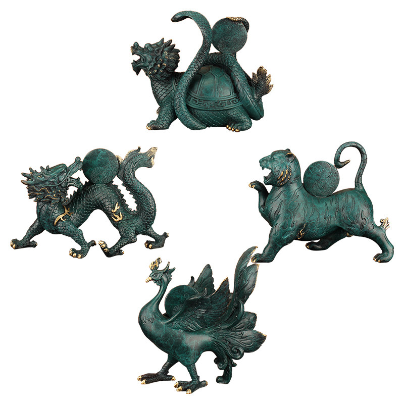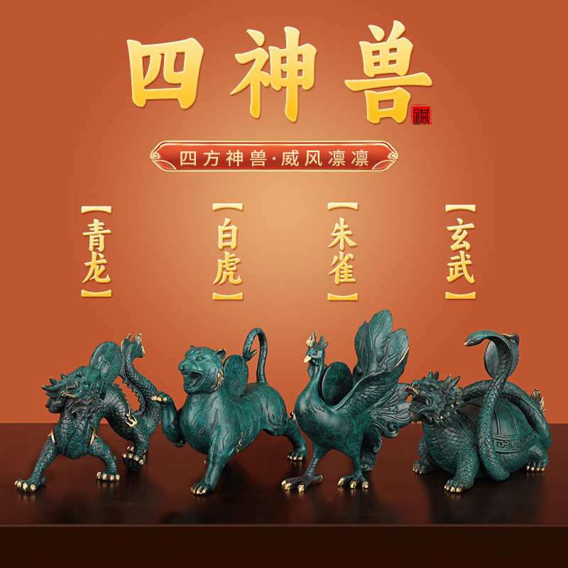 《四神兽》青龙白虎朱雀玄武摆件四大神兽全铜彩中式一套工艺礼品