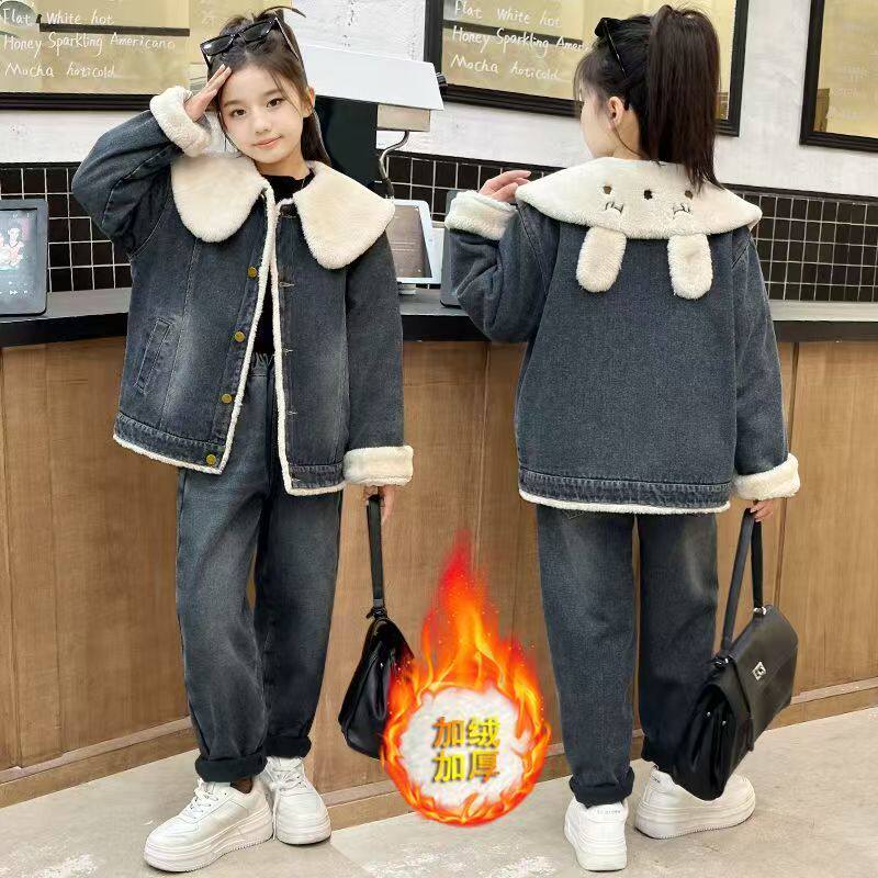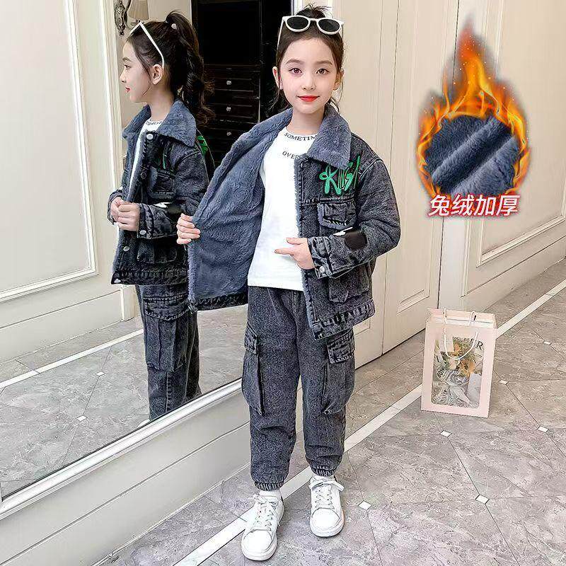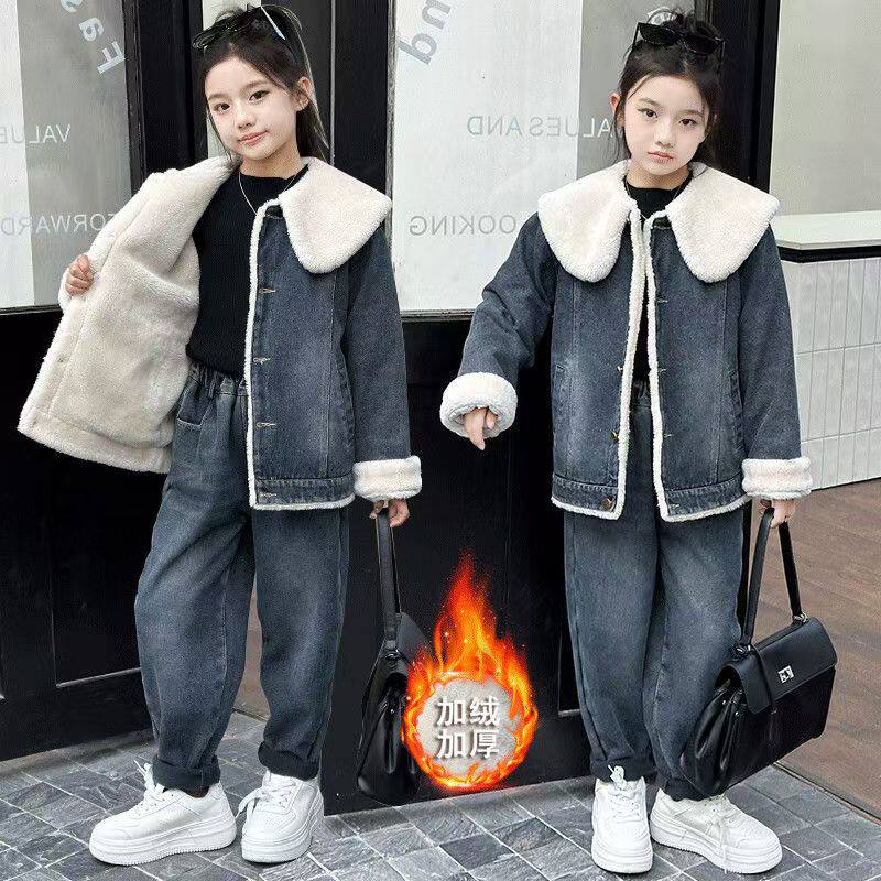 女童秋冬装套装儿童加绒加厚时尚洋气2026新款冬季女孩牛仔两件套