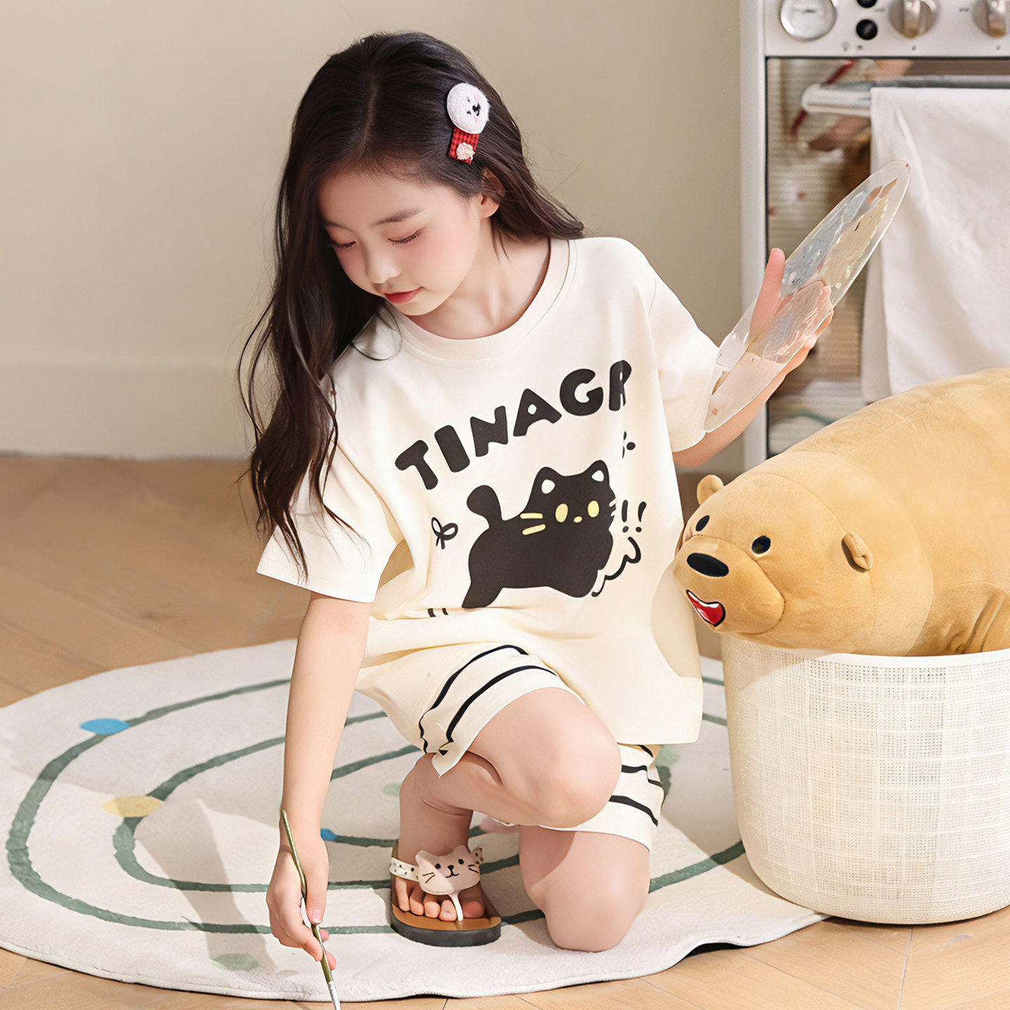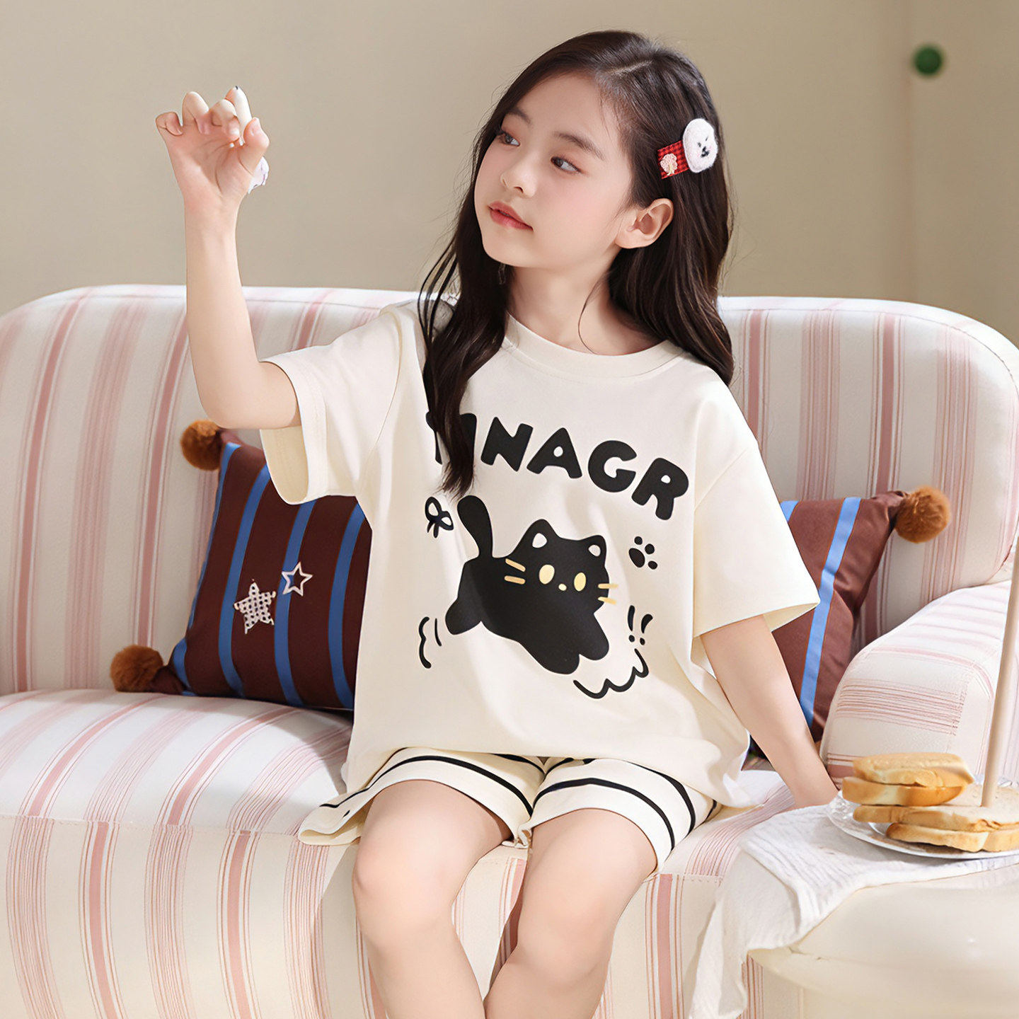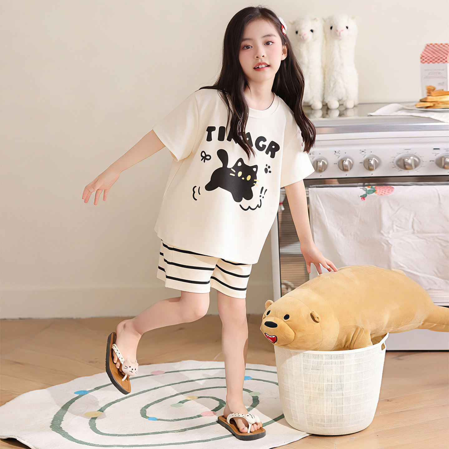2026新款女童睡衣儿童夏季薄款纯棉短袖可爱女孩家居服套装短裤
