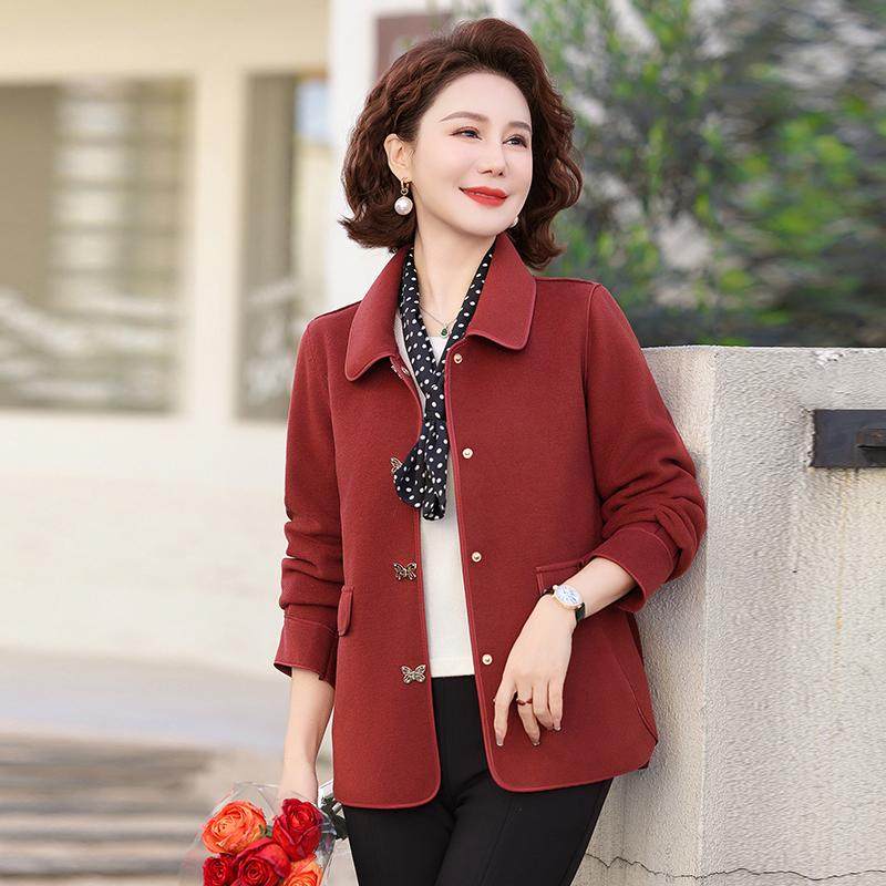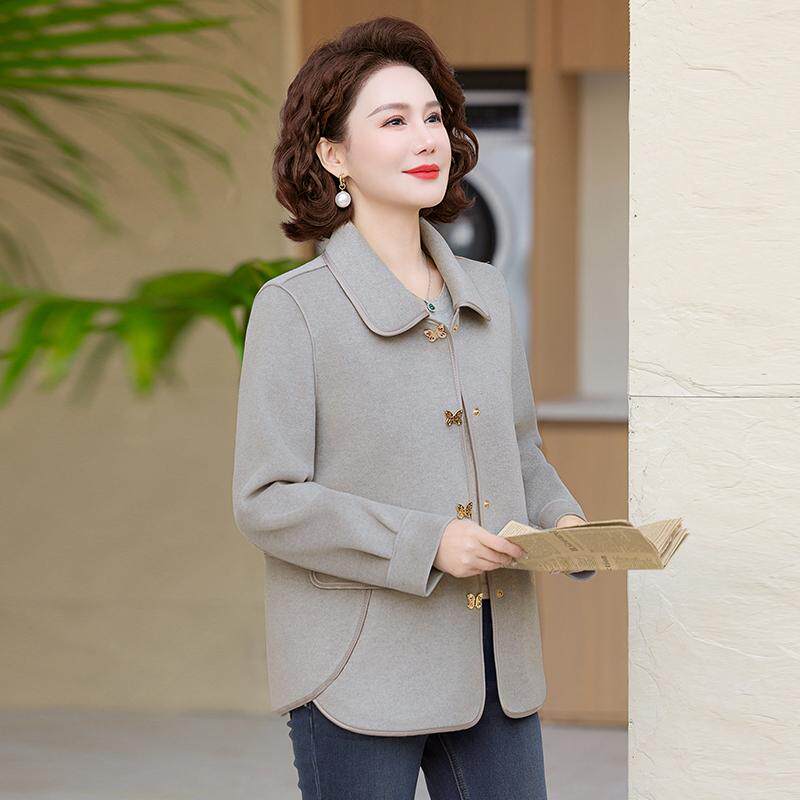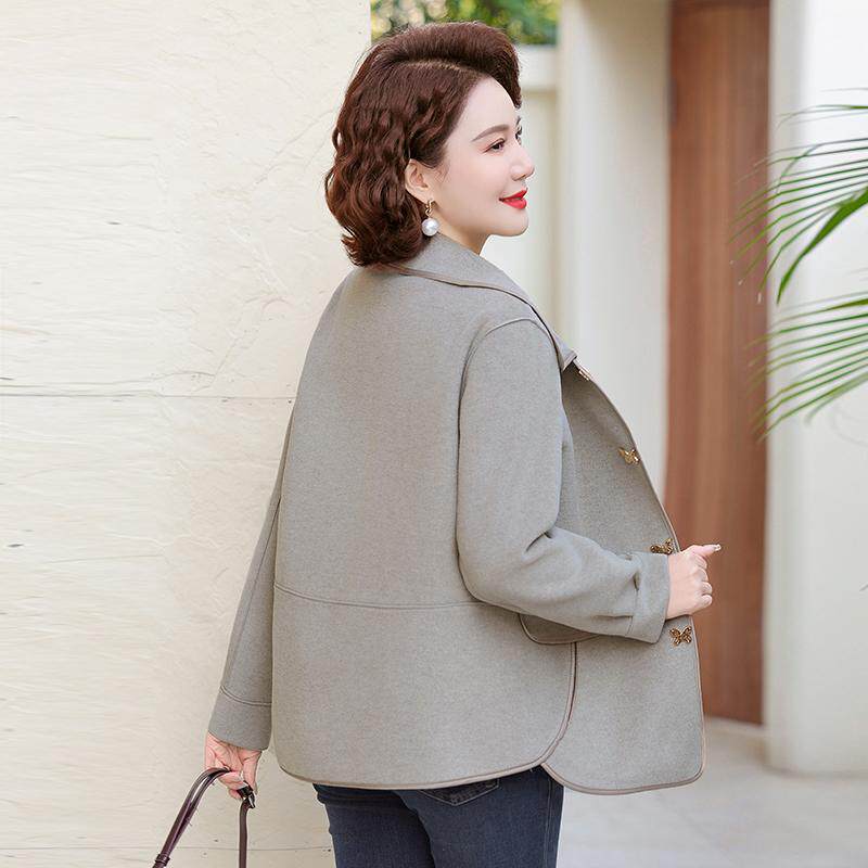 妈妈春装双面呢外套洋气呢子上衣时尚中老年女装春秋短款毛呢大衣