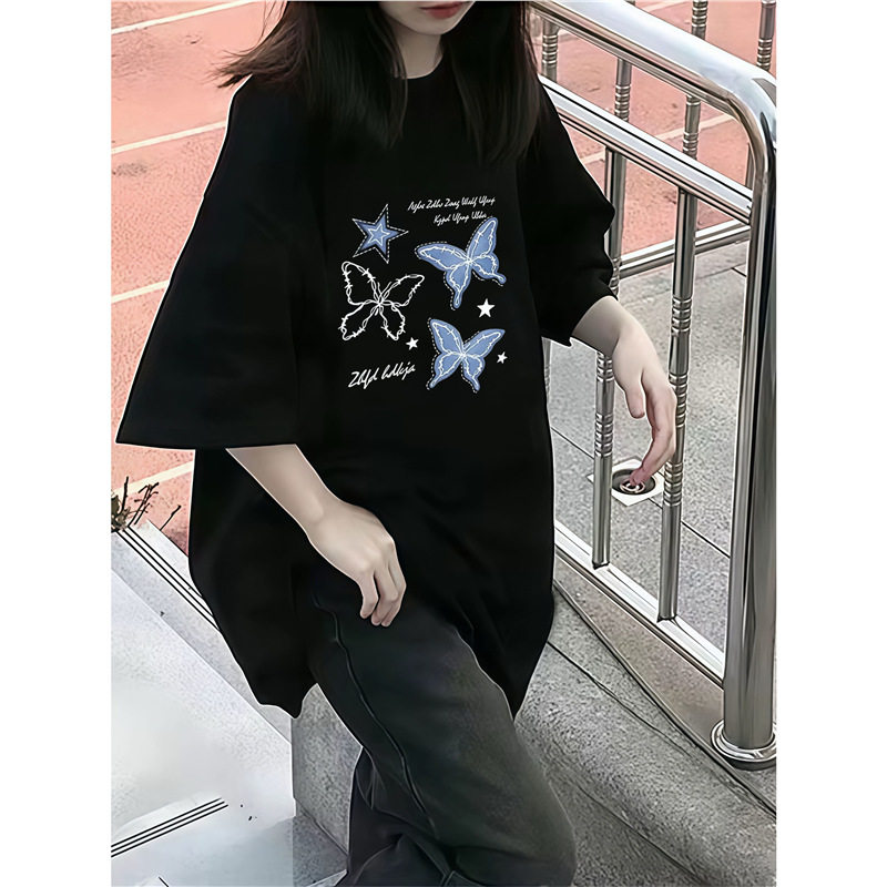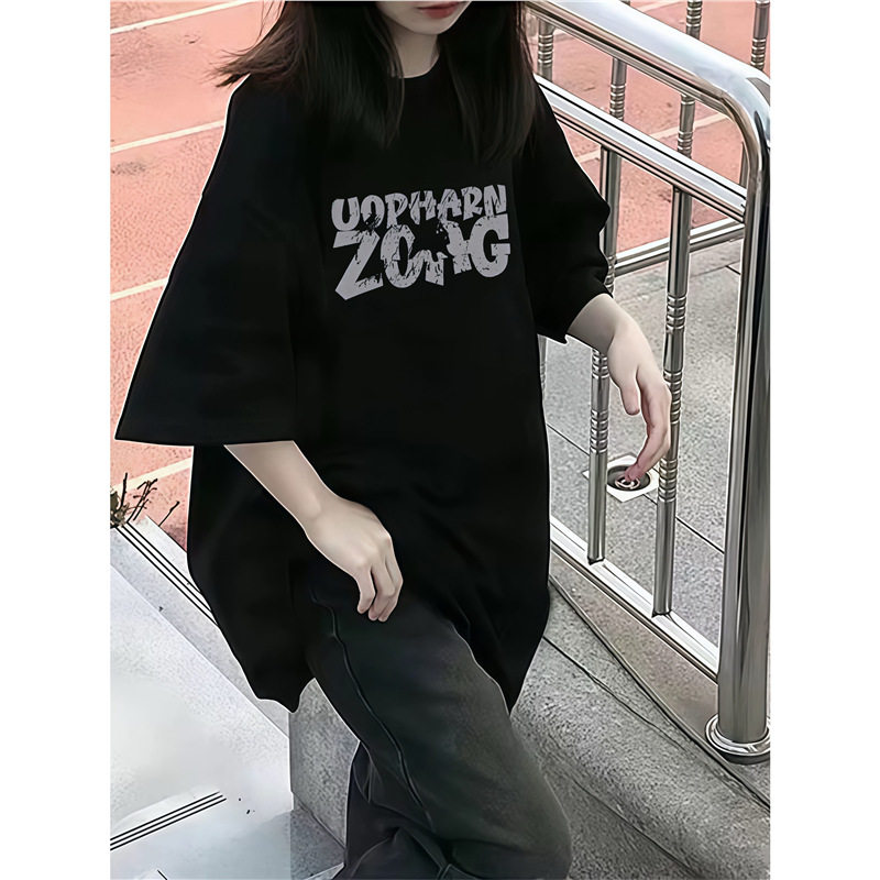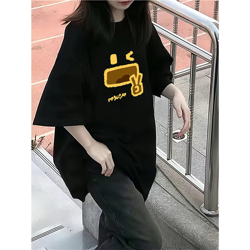 韩版美式复古纯棉短袖女大童初中高中生夏季小众宽松半袖上衣T恤