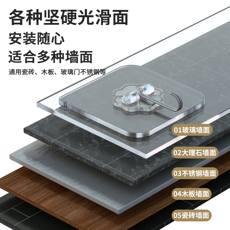粘钩无痕透明强力挂钩免打孔承重粘胶瓷砖墙面墙壁挂钩强力不掉落