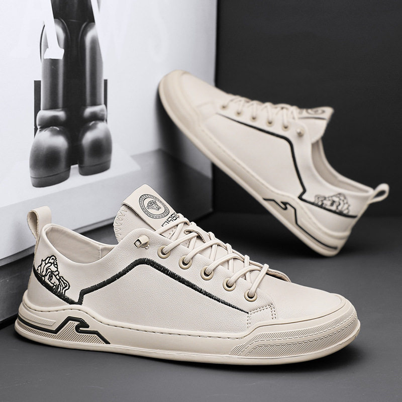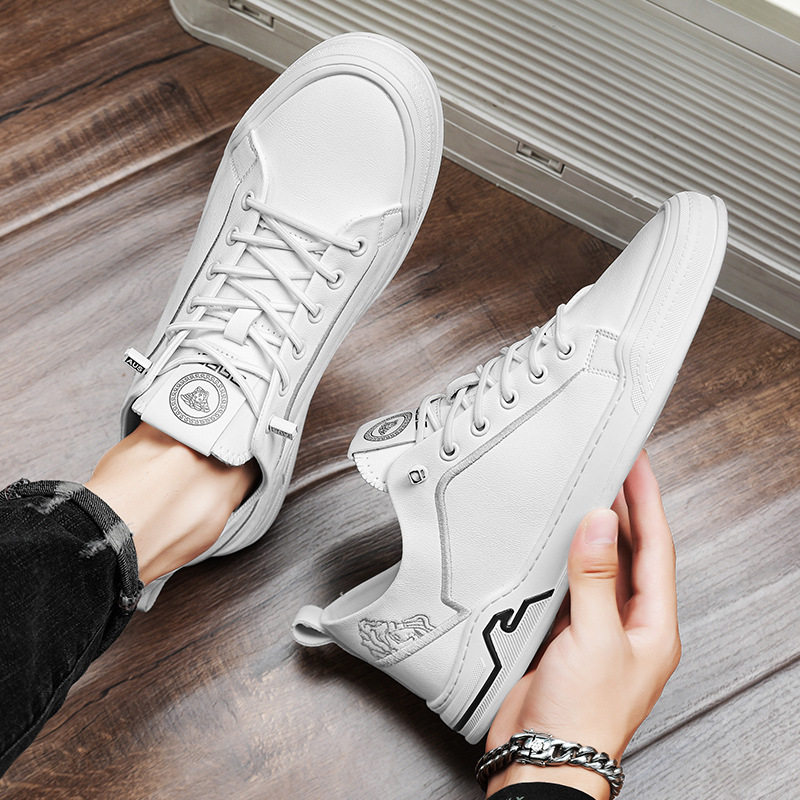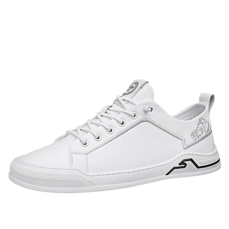 春款奥伦真皮鞋透气小白鞋百搭四季休闲皮鞋懒人套脚潮流板鞋男鞋