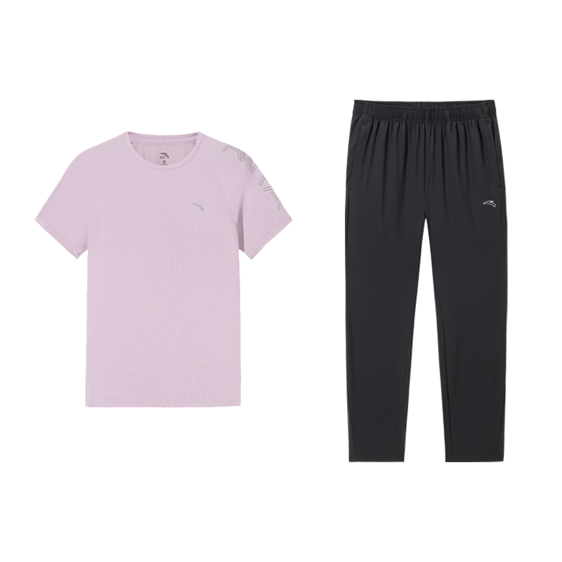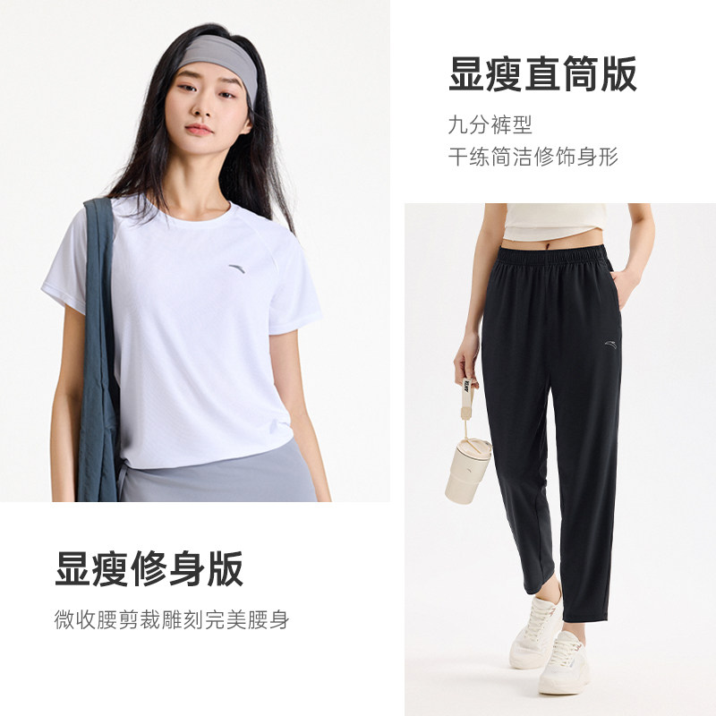 安踏速干套装丨跑步短袖长裤两件套女夏季透气吸汗训练妈妈运动服