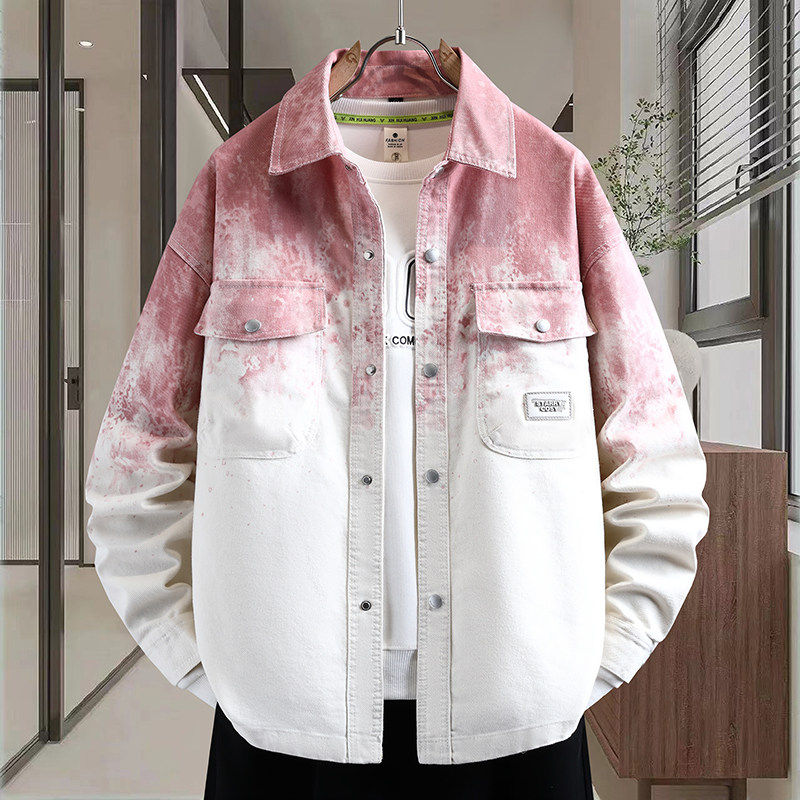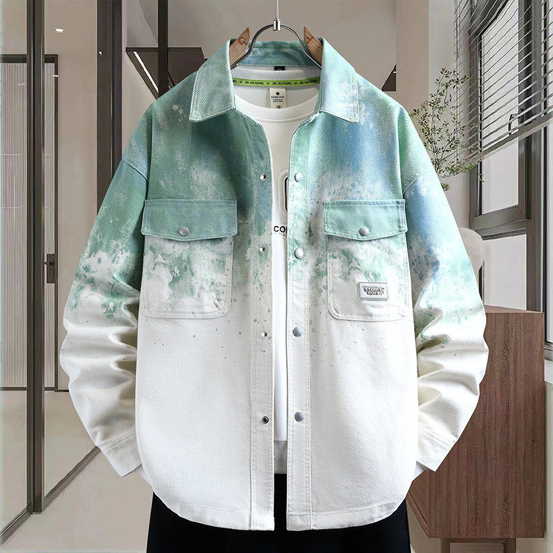 渐变牛仔衬衫式夹克外套男款衣服潮流痞帅风2026新款春季上衣扎染