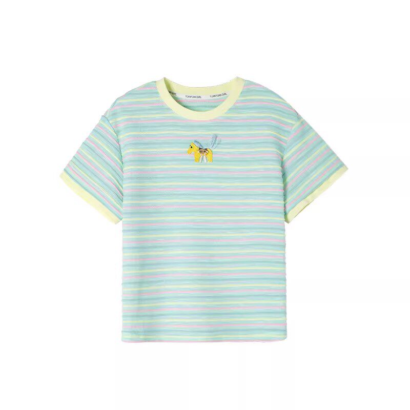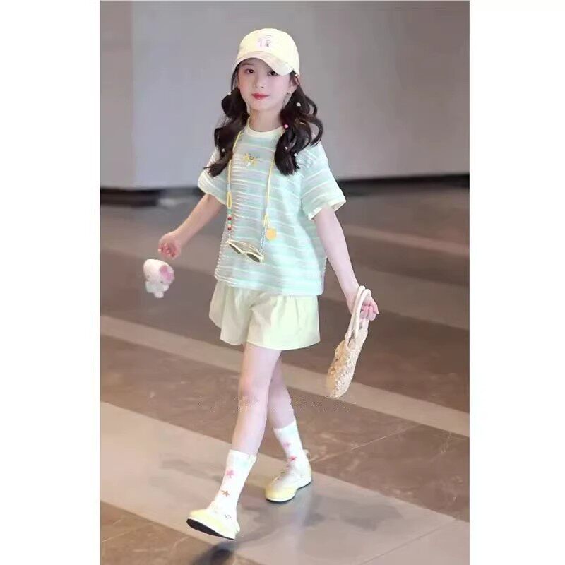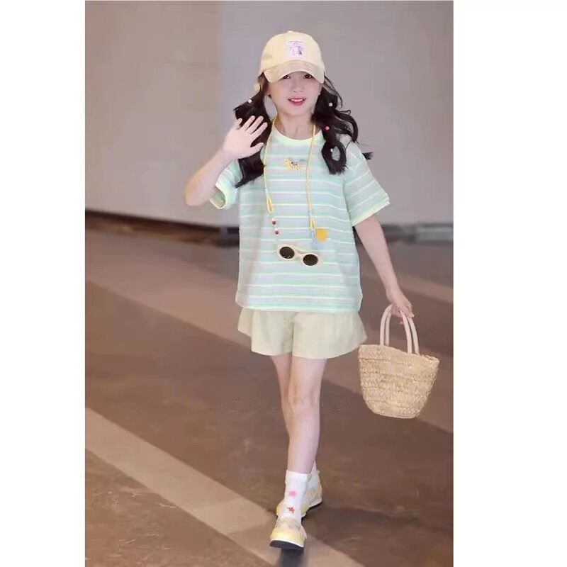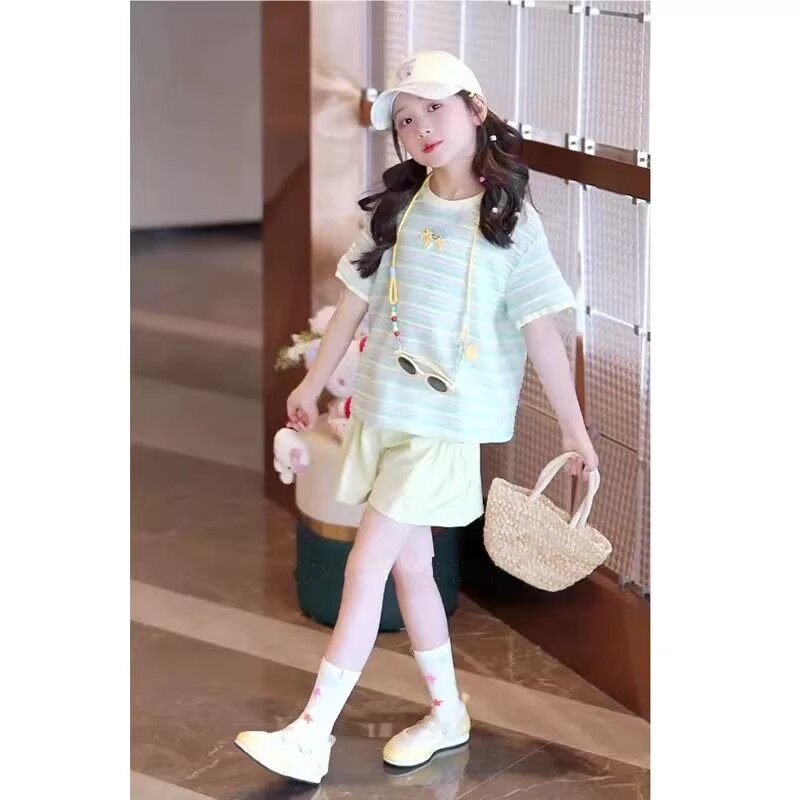 媛媛公主女童套装夏季2026新款儿童条纹短袖T恤两件套中大童短裤