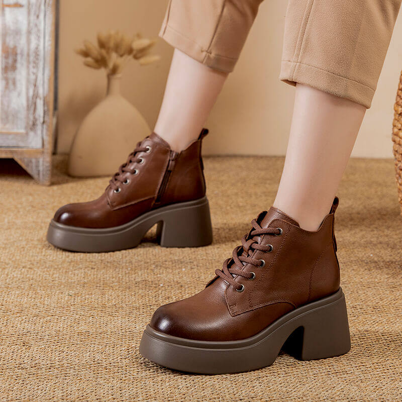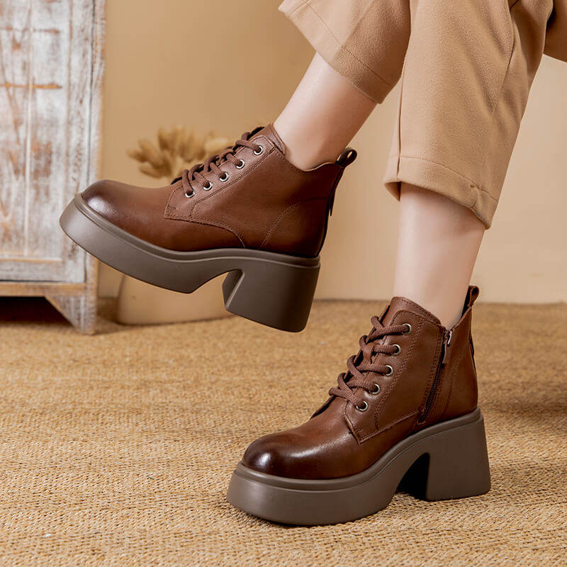 真皮马丁靴女款2026新款春秋单靴小个子女靴厚底英伦风棕色短靴子