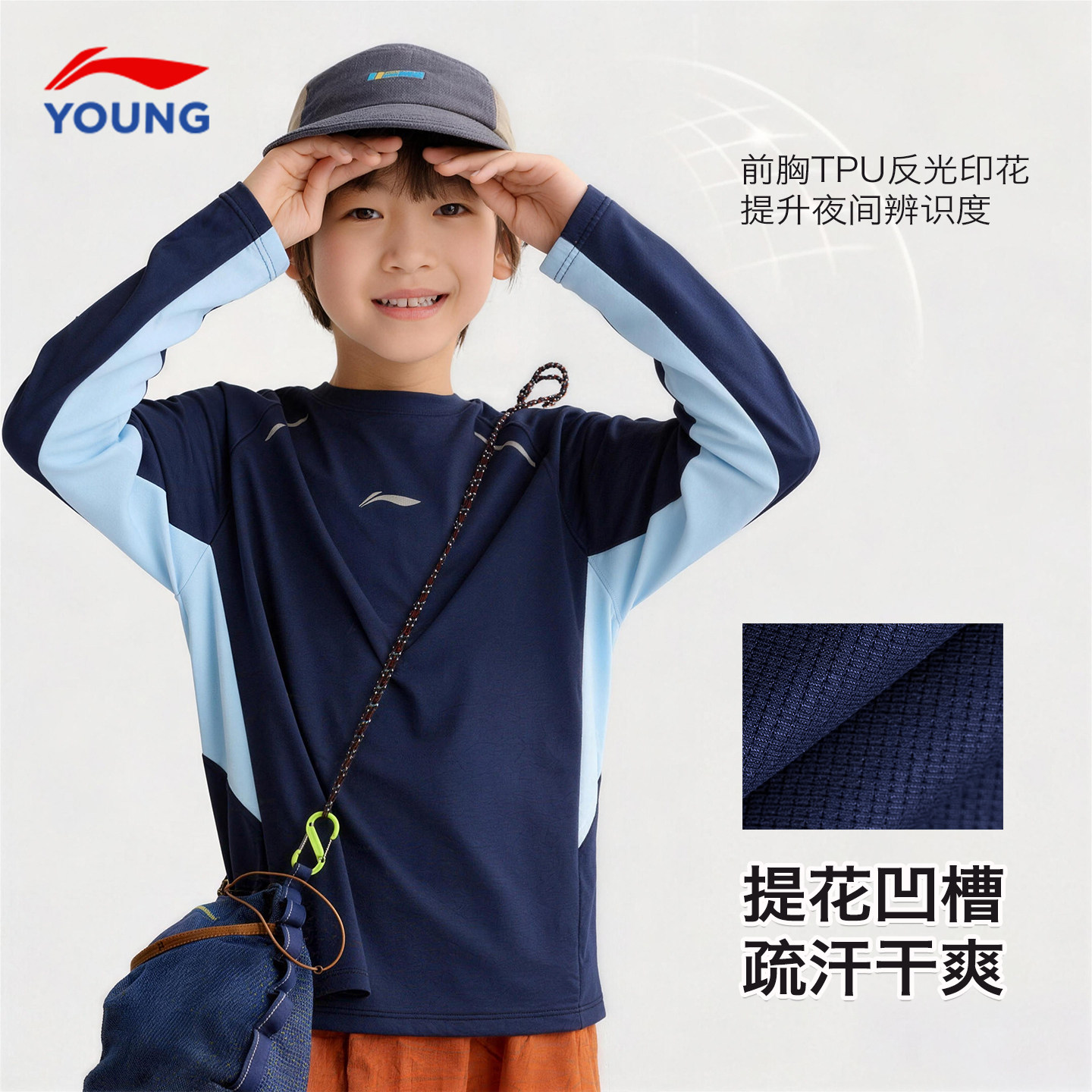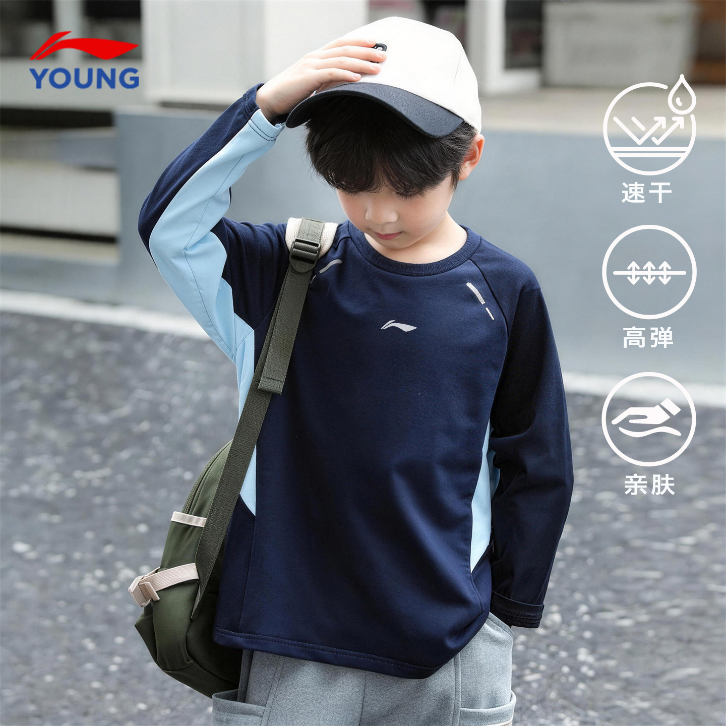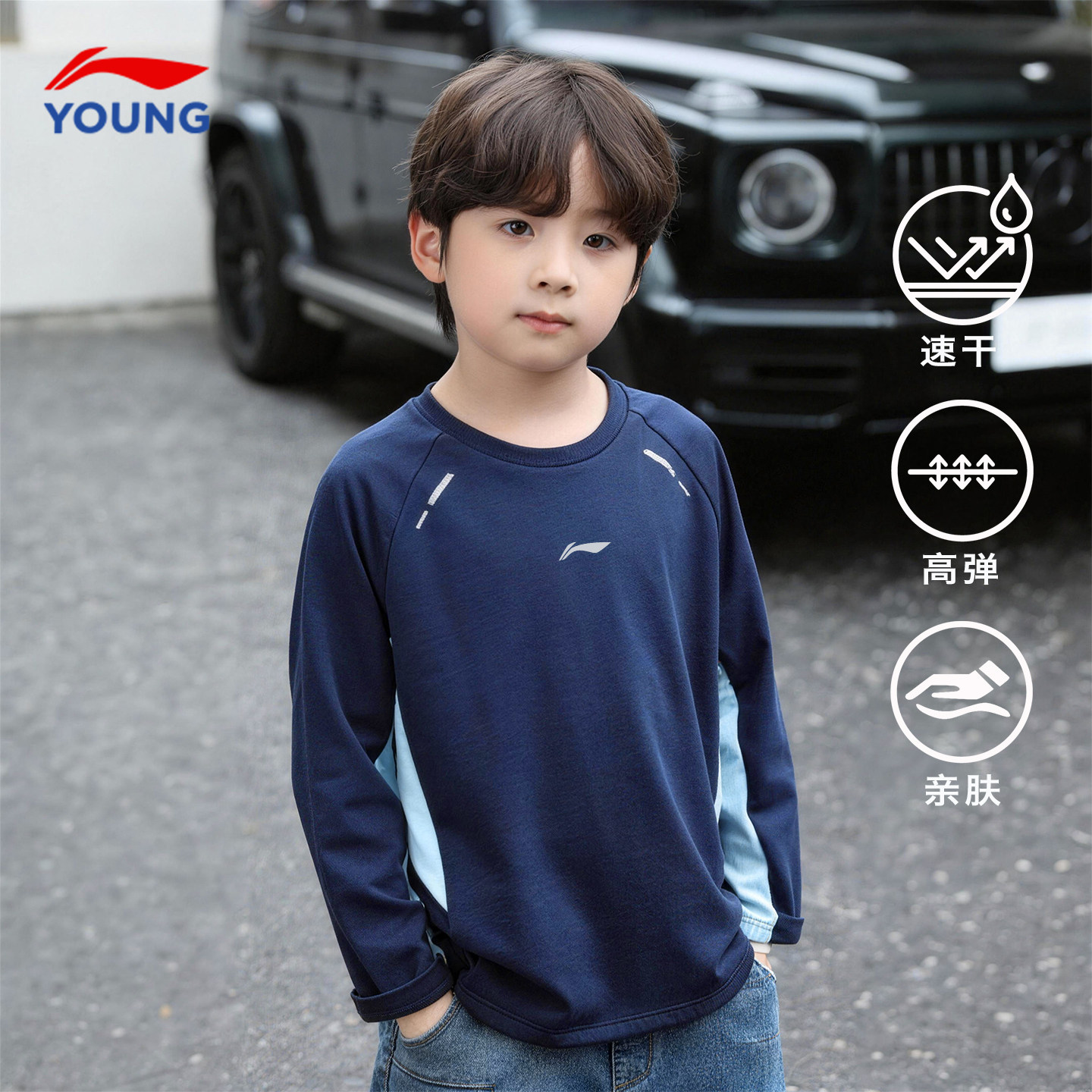 李宁儿童长袖t恤薄款春季新款男童体能速干打底衫卫衣运动上衣