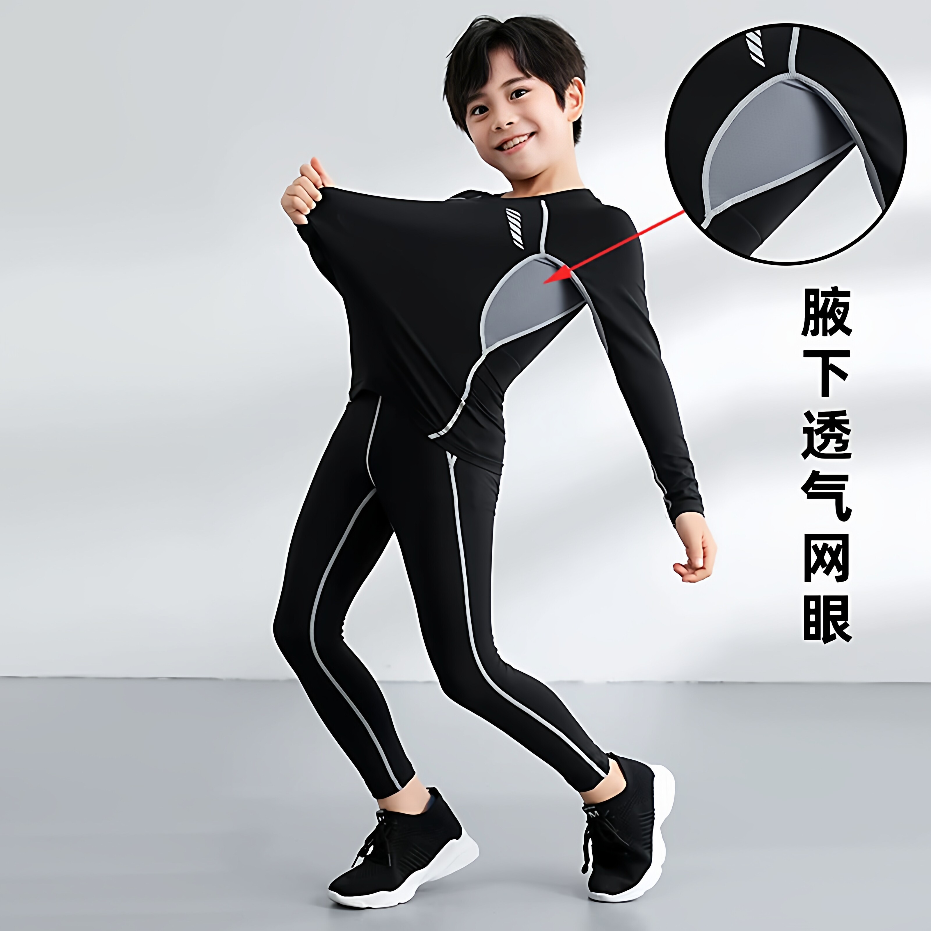 儿童篮球服套装男童秋冬紧身衣训练服足球服女童速干衣运动打底衫