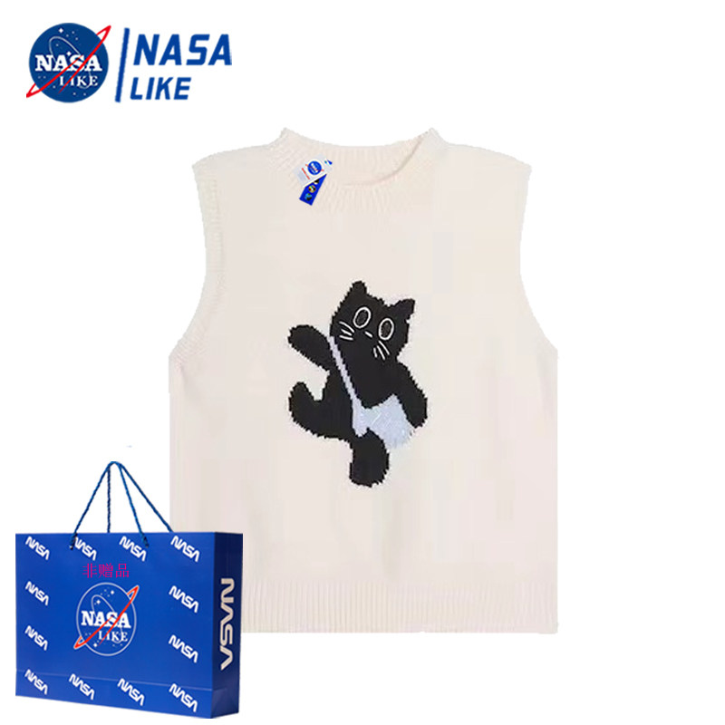 NASA女童猫咪毛衣马甲秋冬新款中大儿童可爱时髦叠穿针织坎肩上衣