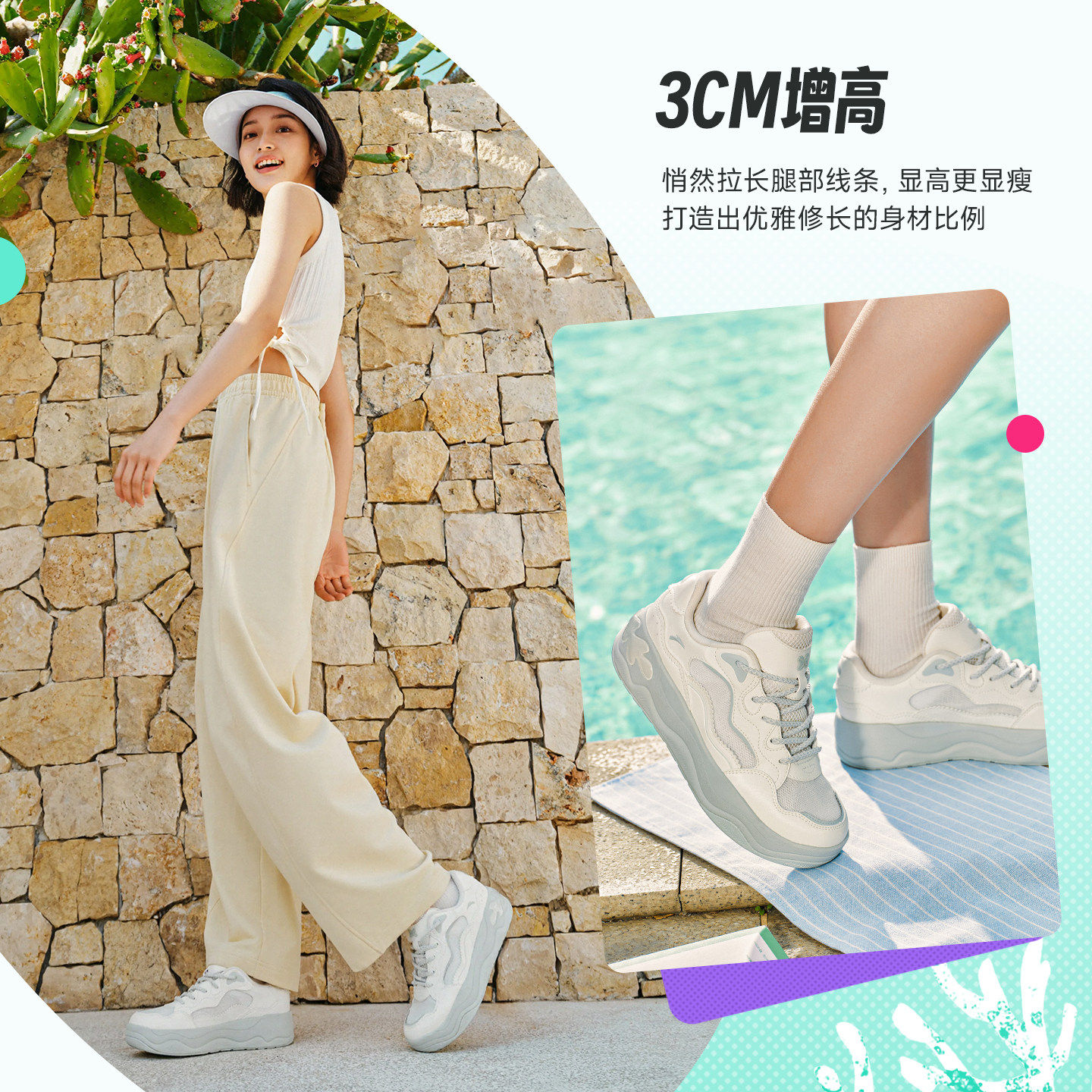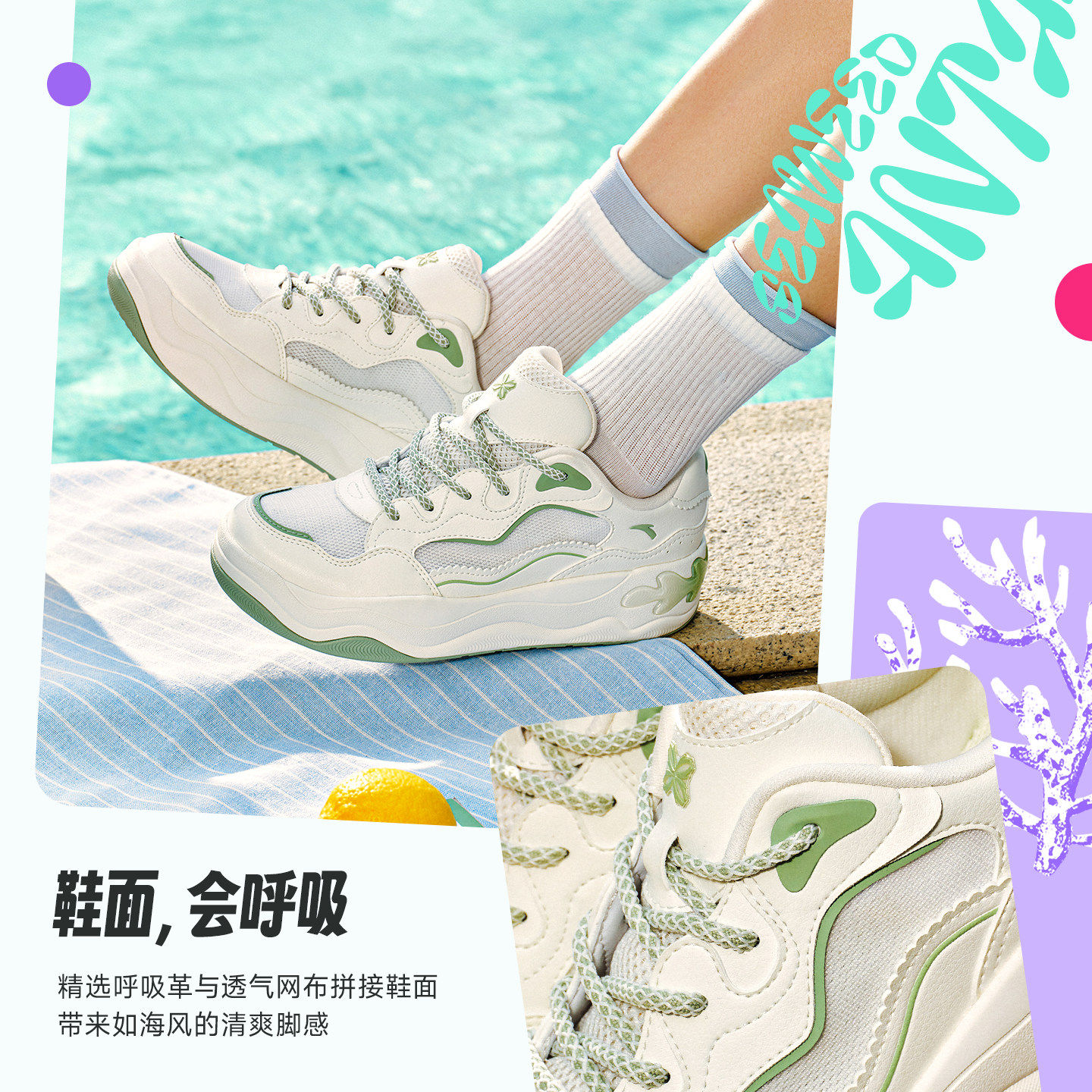 安踏海草3透气板鞋女款厚底增高女鞋夏季新款舒适潮流软底休闲鞋