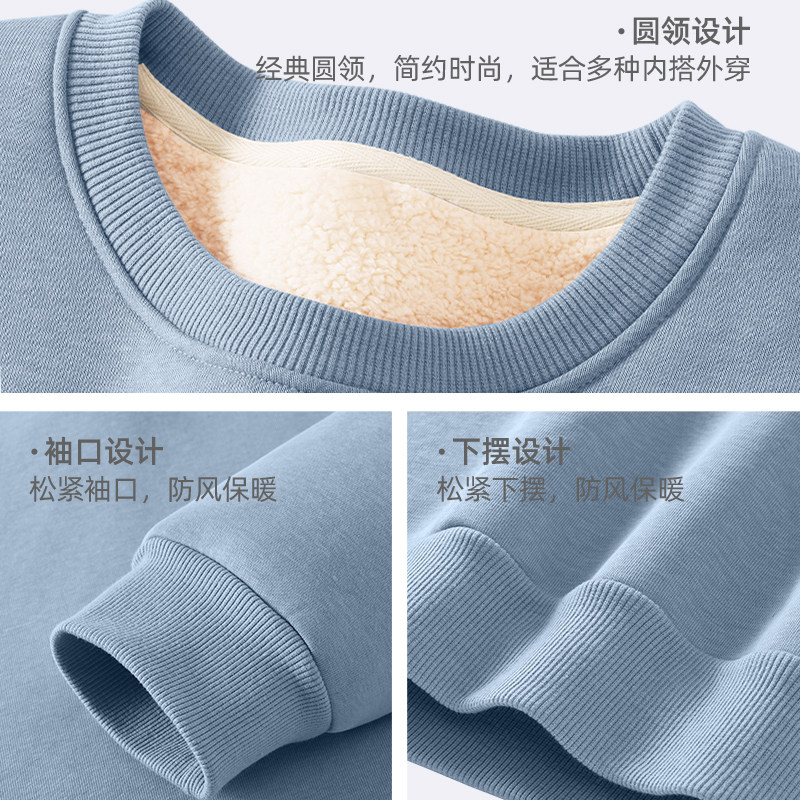 名创优品卫衣女2026新款蓝色加绒加厚冬装上衣羊羔绒女款套头衫D