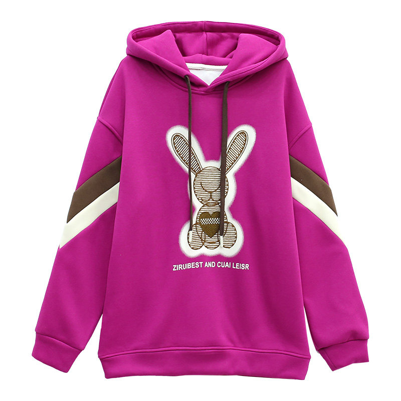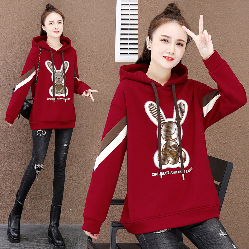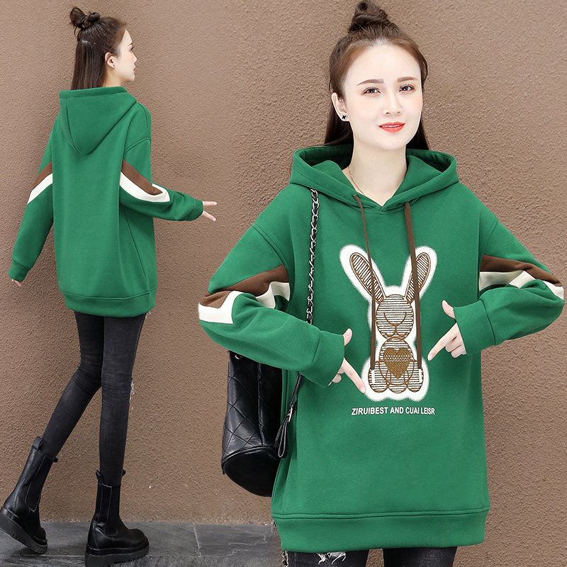 带帽子套头卫衣加绒加厚女款2026年新款秋冬季中长款兔子卡通上衣