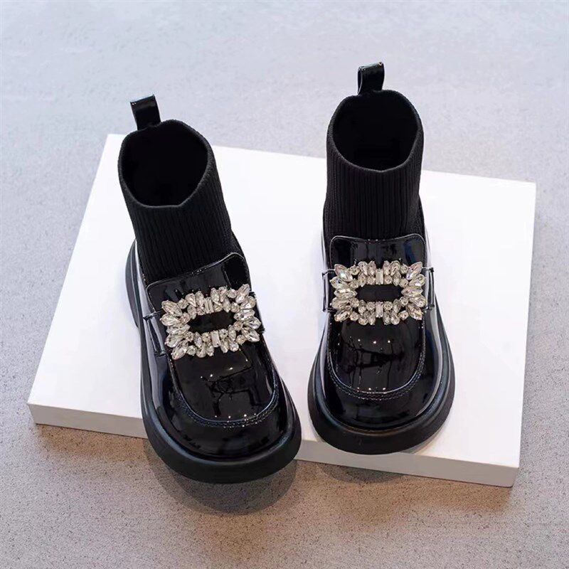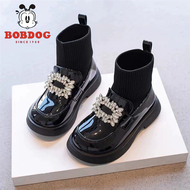 真皮女童袜靴2023春秋新款公主马丁靴儿童皮鞋女孩软底短靴子黑色