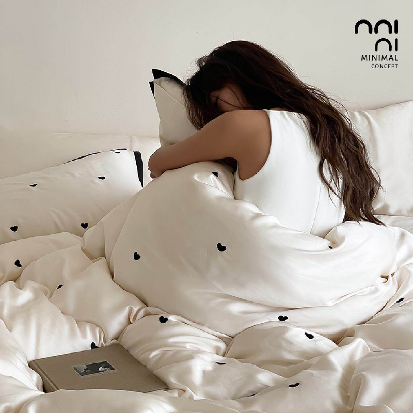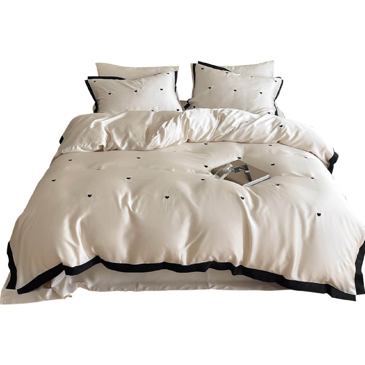 Minimal黑色桃心|60s天丝简约感四件套轻奢高级感冰丝床上用品4