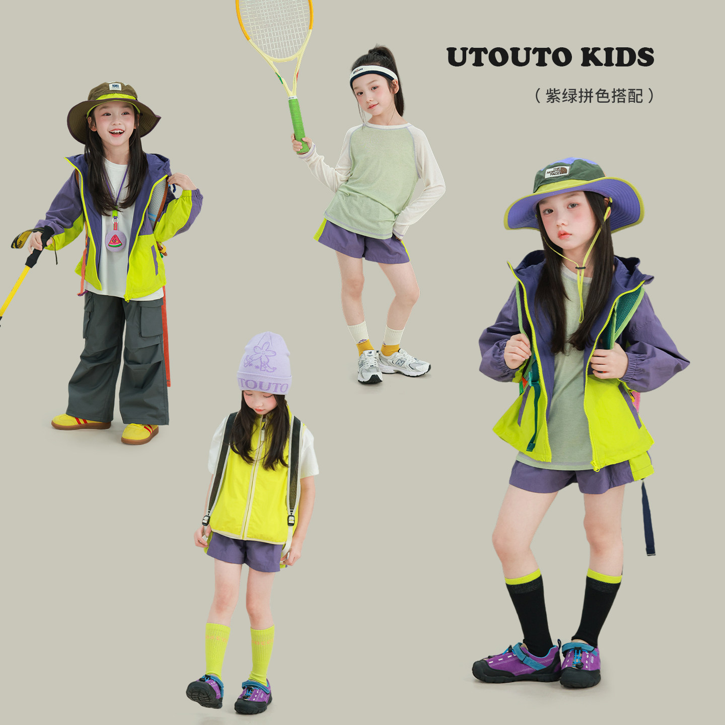 大耳象女童拼色连帽外套+拼色短裤2026春季新款宝儿运动户外套装