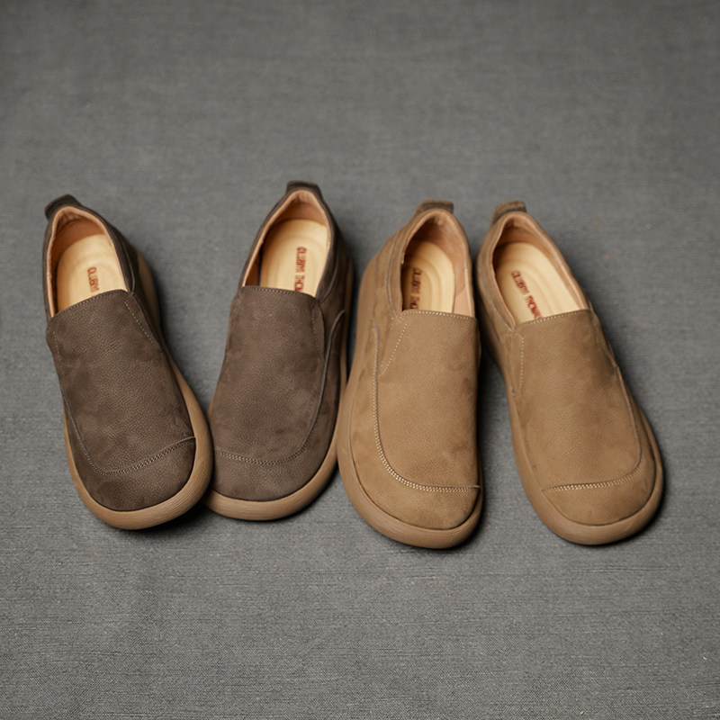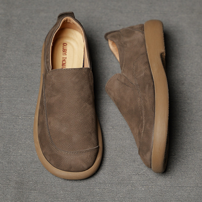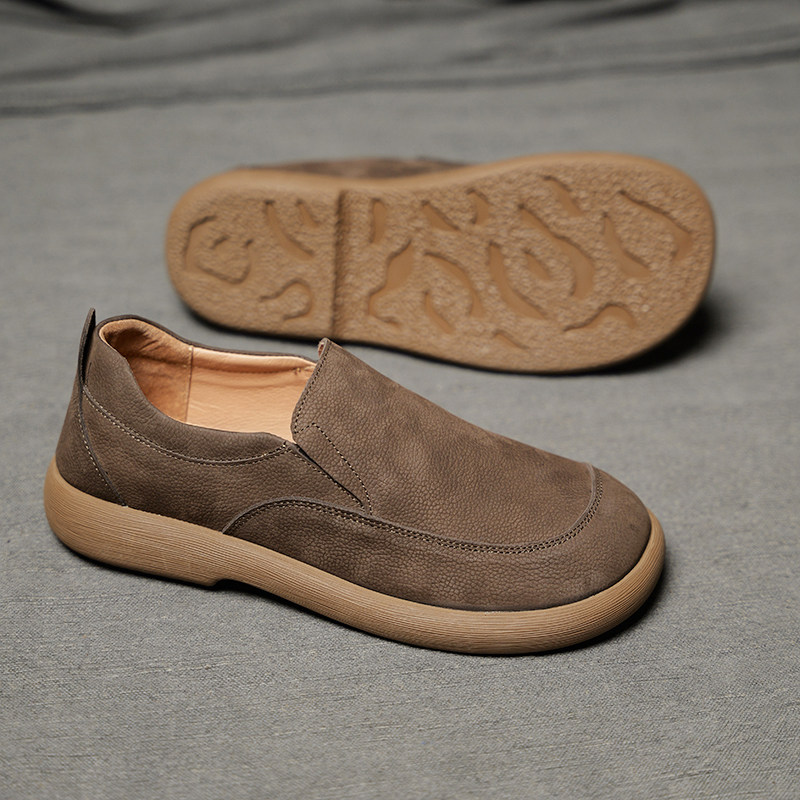 新款男士休闲皮鞋头层牛皮套脚一脚蹬舒适软底板鞋透气真皮男鞋