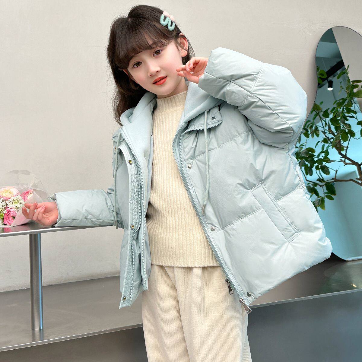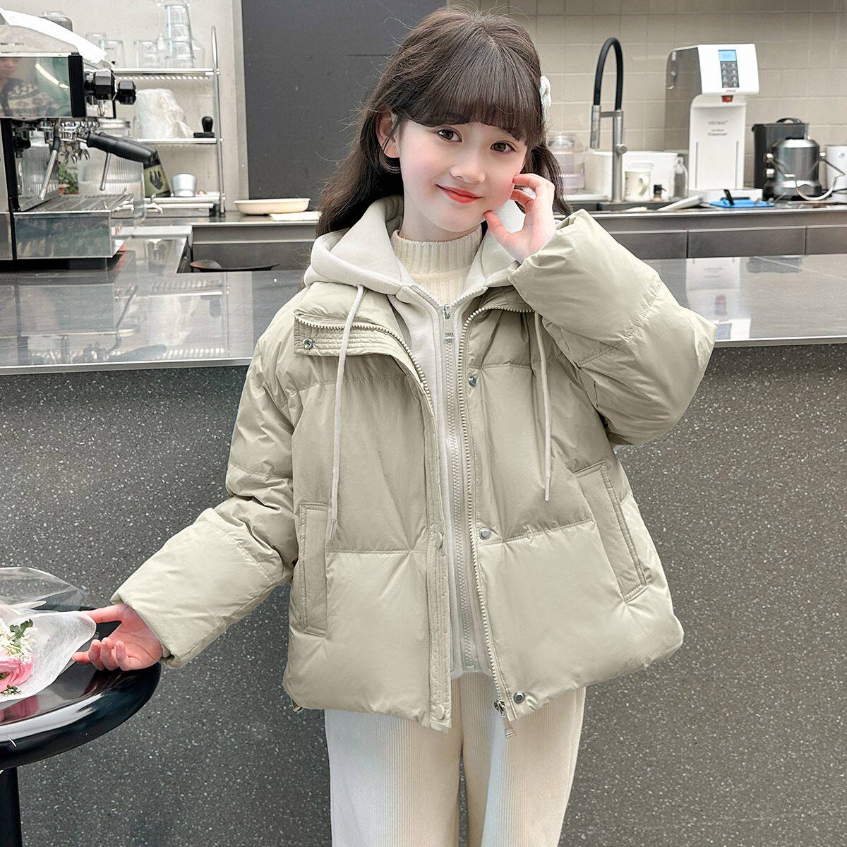 女童羽绒棉服短款2025新款中大童加厚棉衣冬季儿童洋气假两件外套