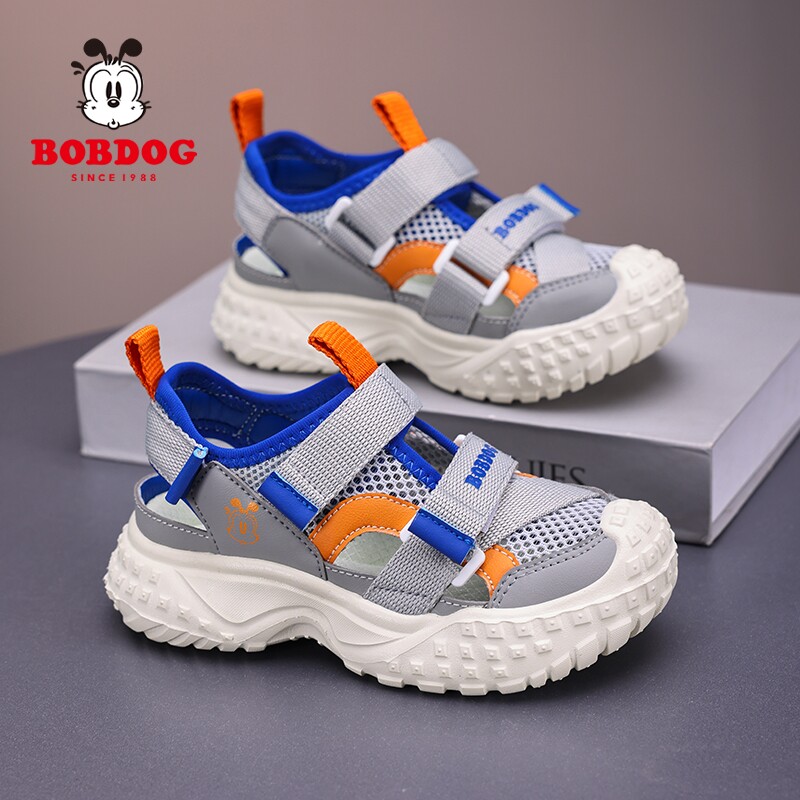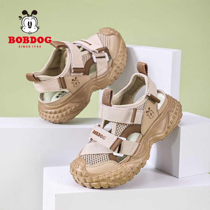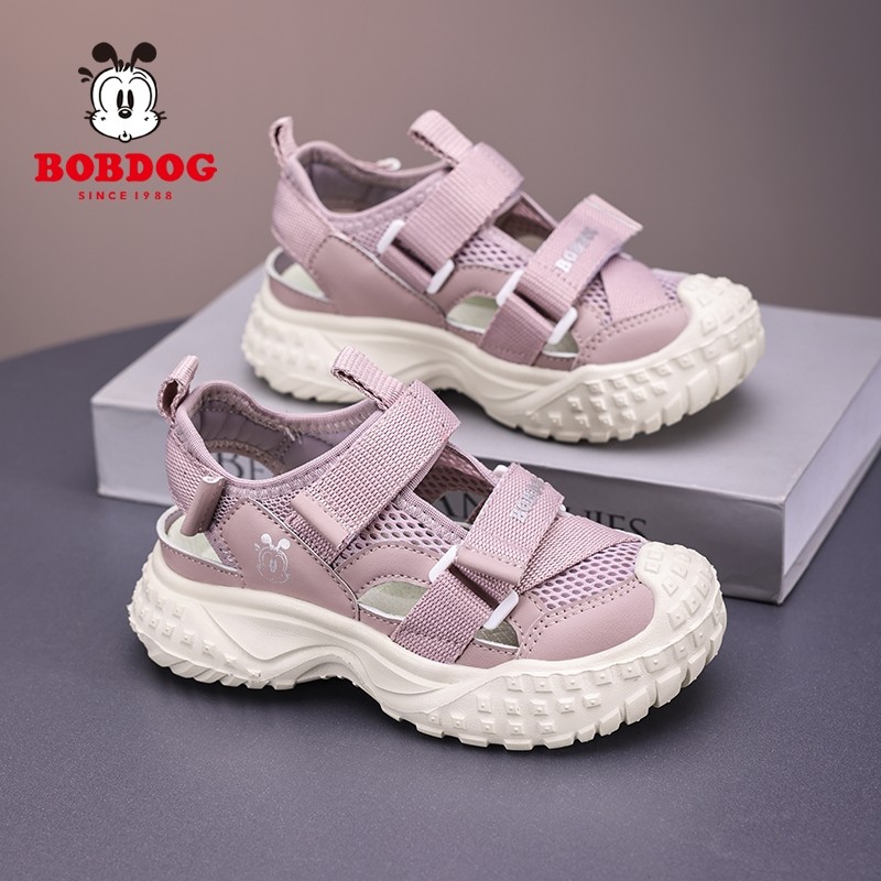巴布豆男童运动凉鞋夏季新款网面透气女童鞋小学生软底包头框子鞋