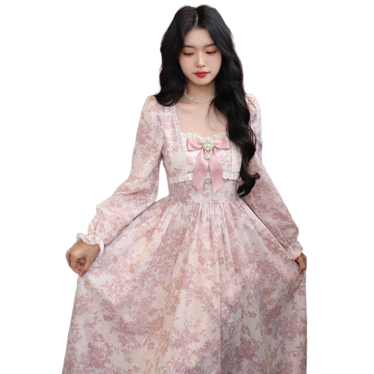法式甜美碎花长袖连衣裙女秋季感气质长裙收腰温柔风仙女裙子女装
