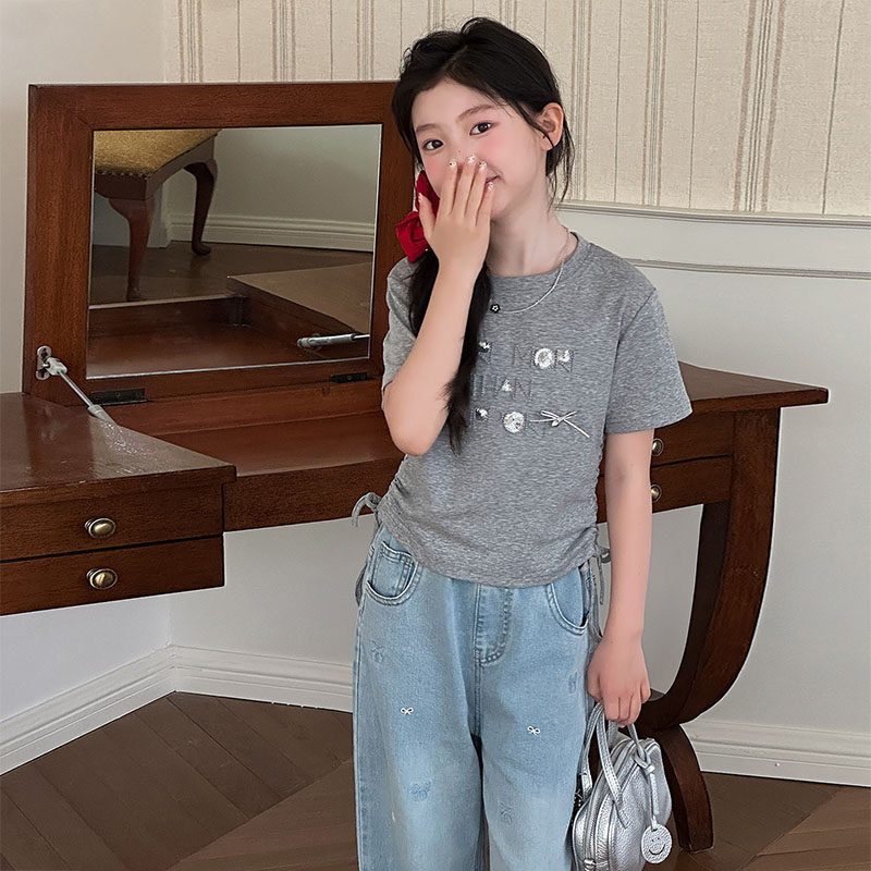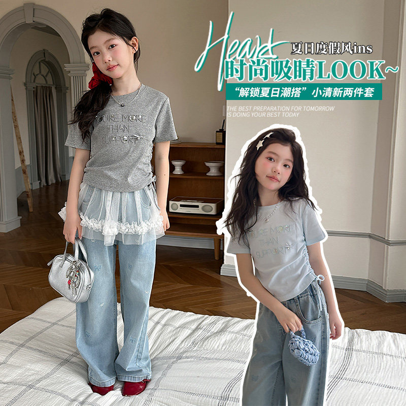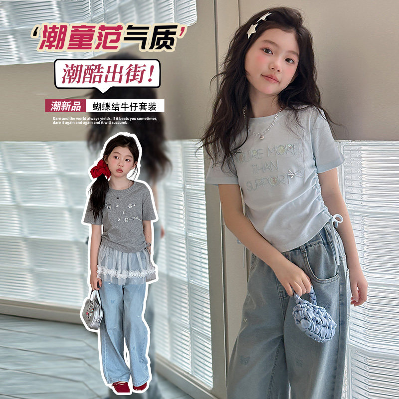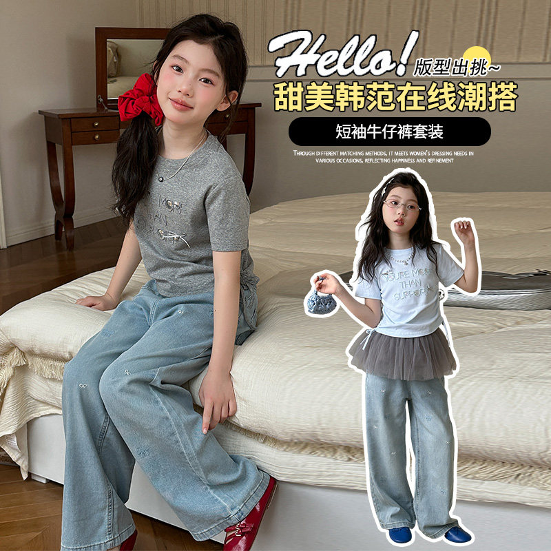 女童短袖T恤2026新款中大童韩版洋气字母印花上衣套装夏季时尚潮