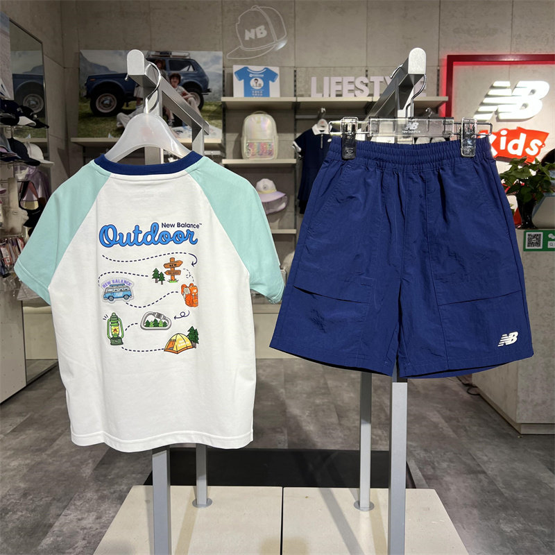 New Balance NB25夏款男童女童儿童韩版短袖T恤短裤套装7EF21033
