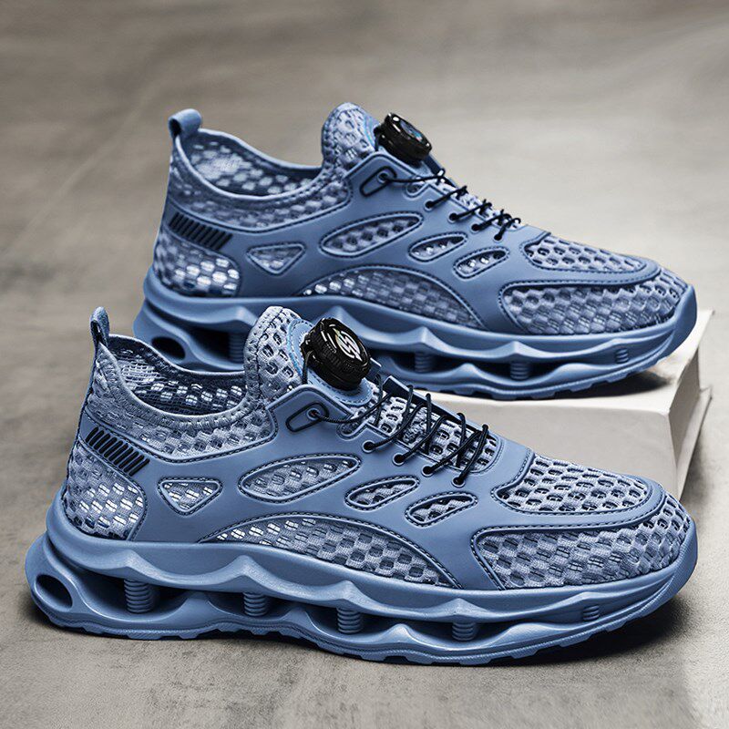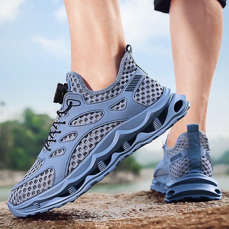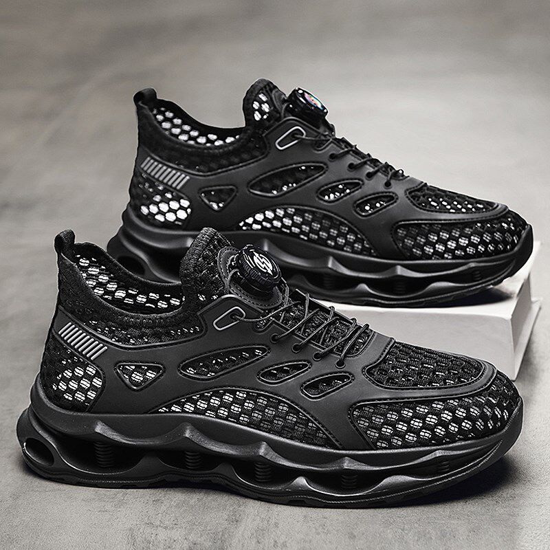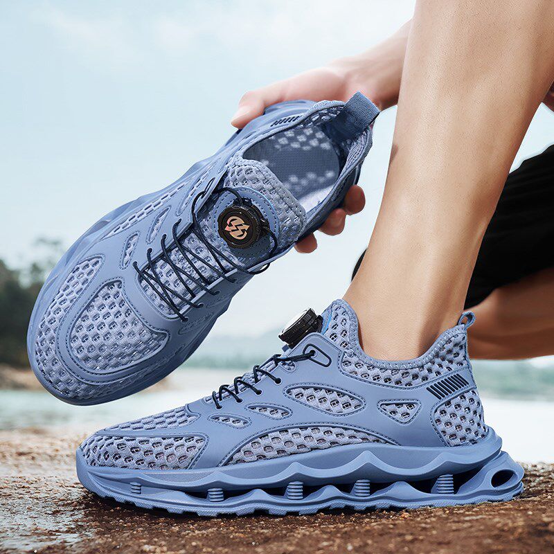速发男鞋夏季网面透气网眼薄款镂空网鞋软底减震旋钮闭合休闲运动