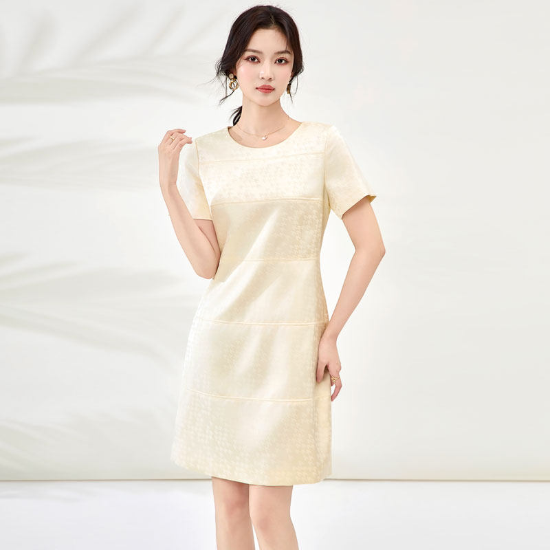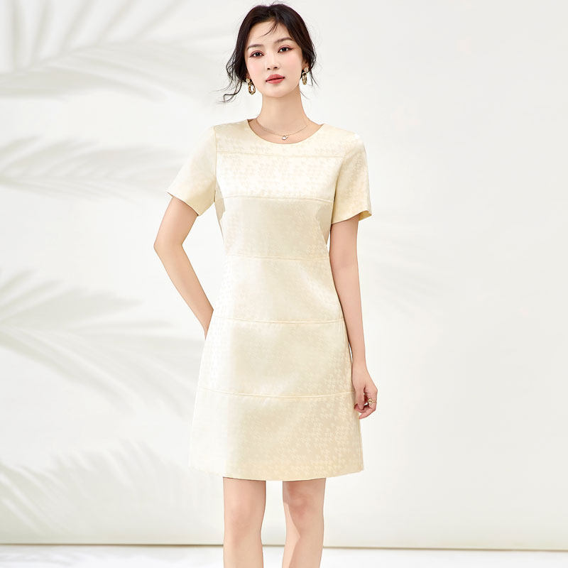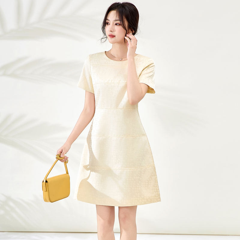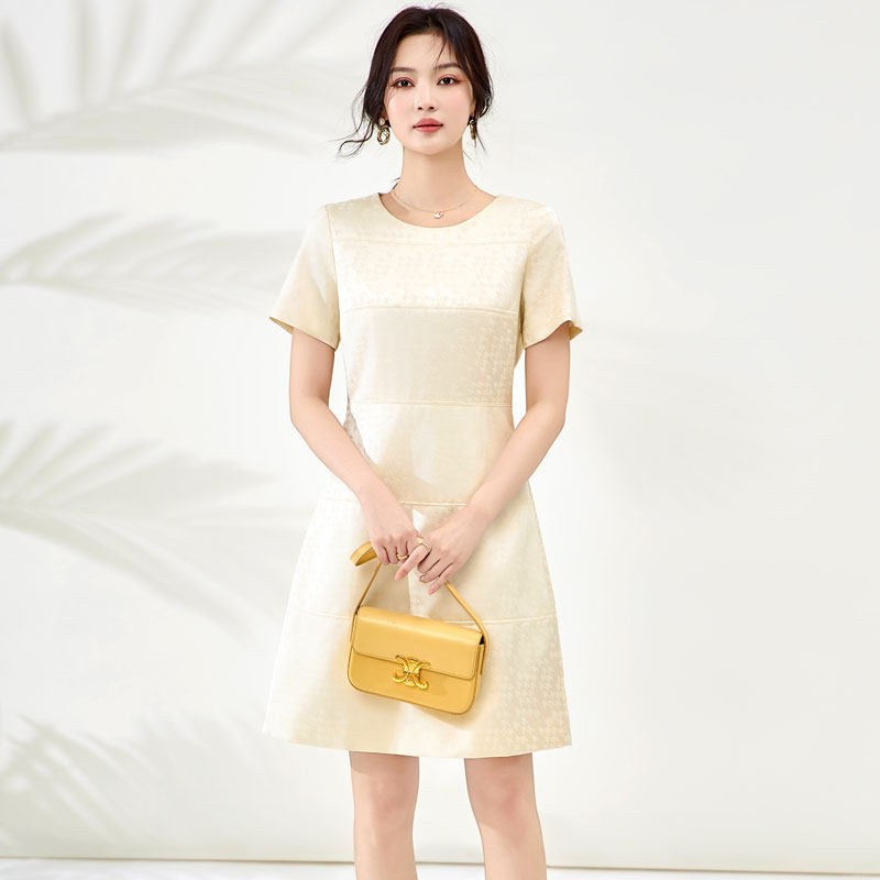 迪奥小香风短袖连衣裙女26夏季新款轻奢高级感提花名媛A字中长裙